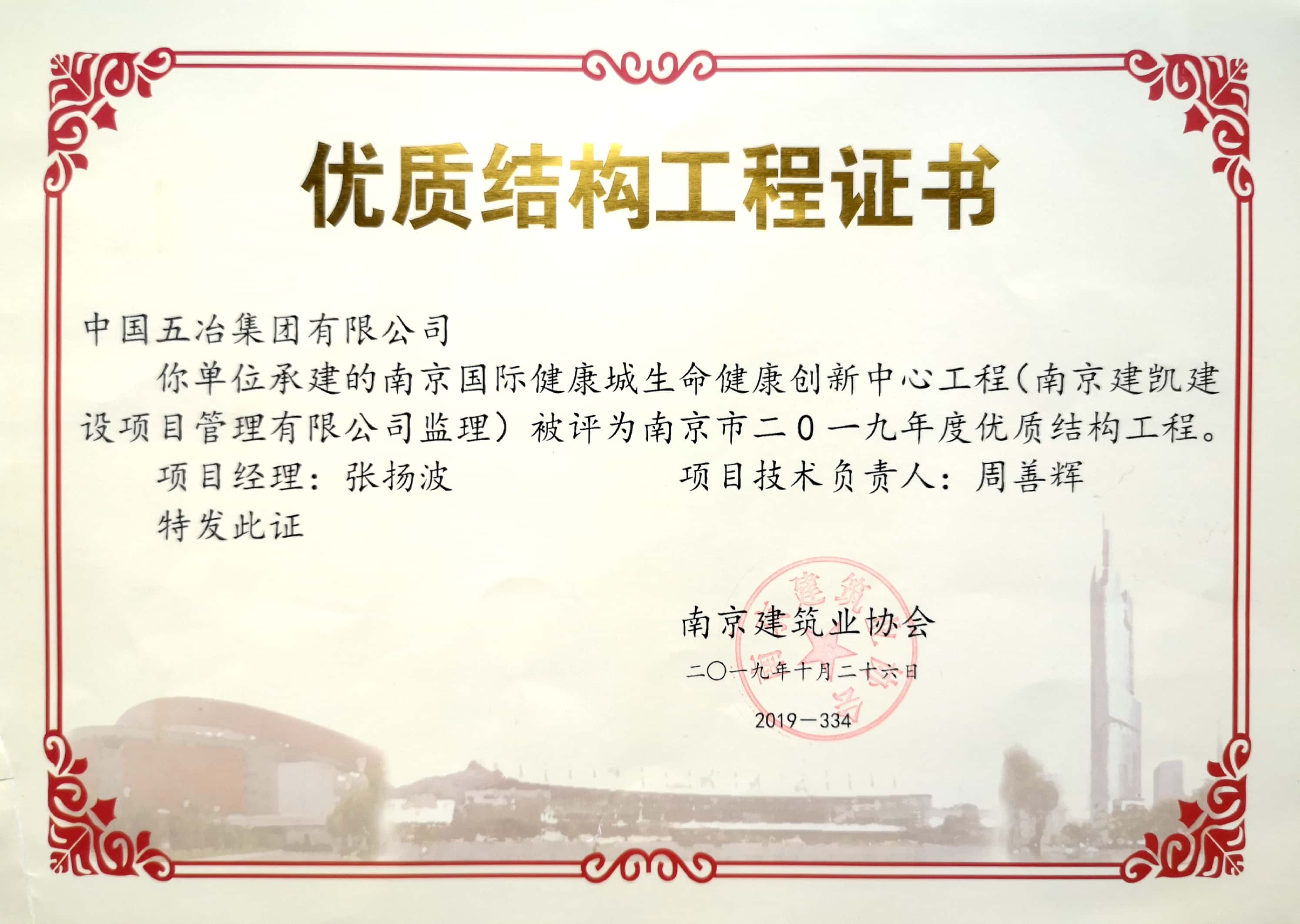 南京國際健康城生命健康創(chuàng)新中心工程——南京市二〇一九年度優(yōu)質(zhì)結(jié)構(gòu)工程