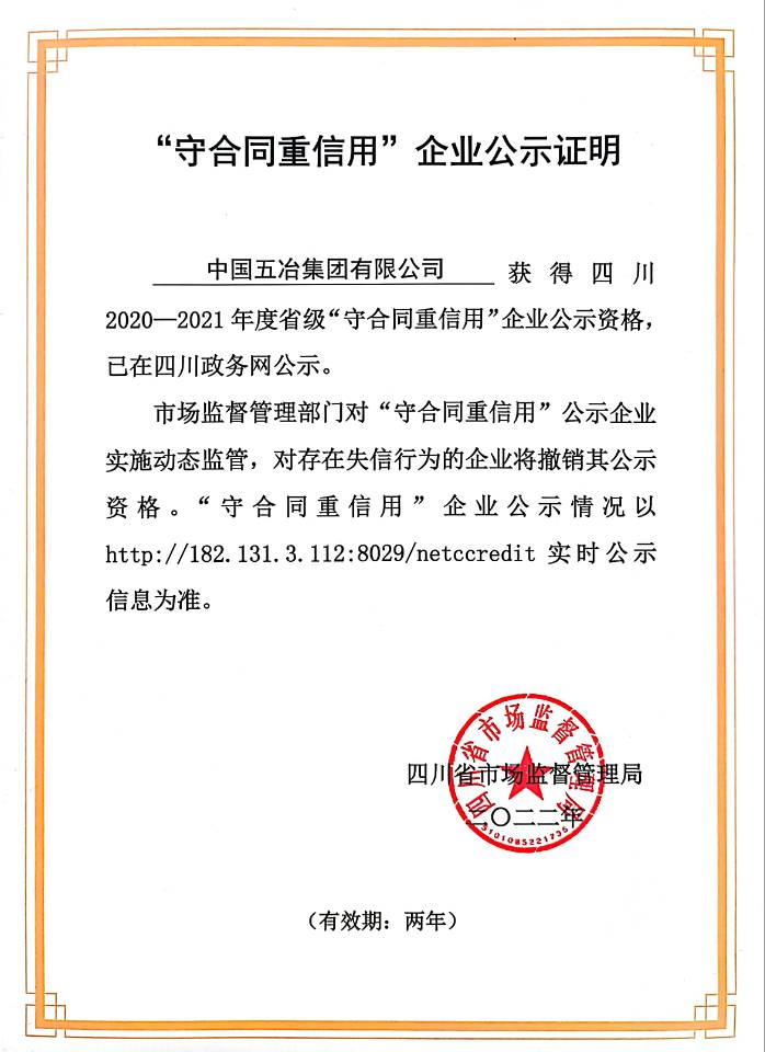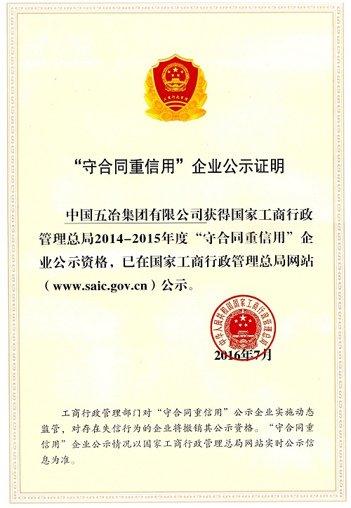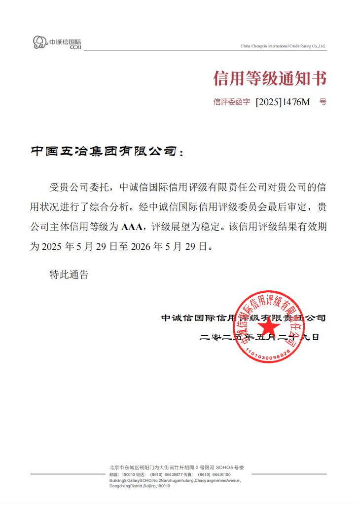 中誠(chéng)信AAA級(jí)信用等級(jí)