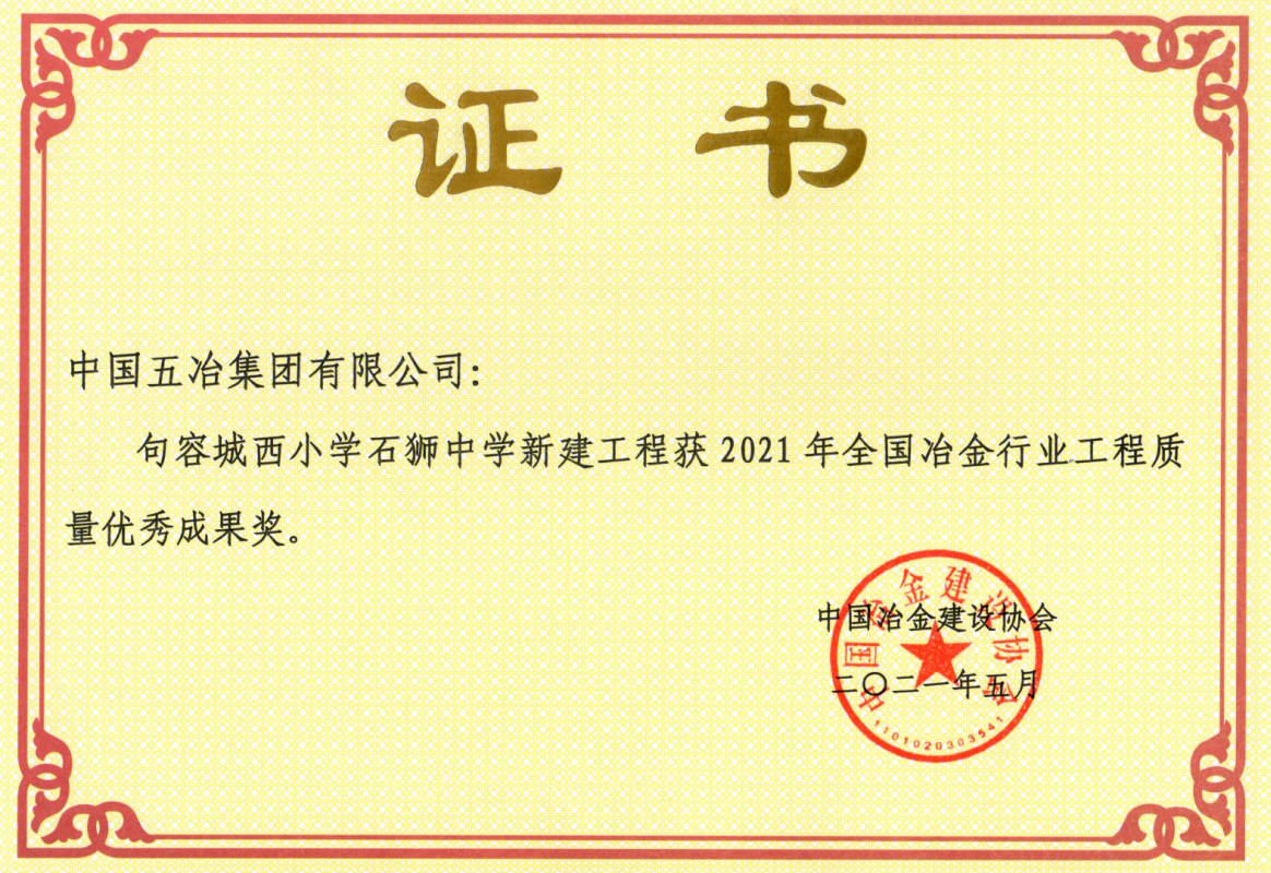 句容城西小學(xué)石獅中學(xué)新建工程-2021年全國(guó)冶金行業(yè)工程質(zhì)量?jī)?yōu)秀成果獎(jiǎng)