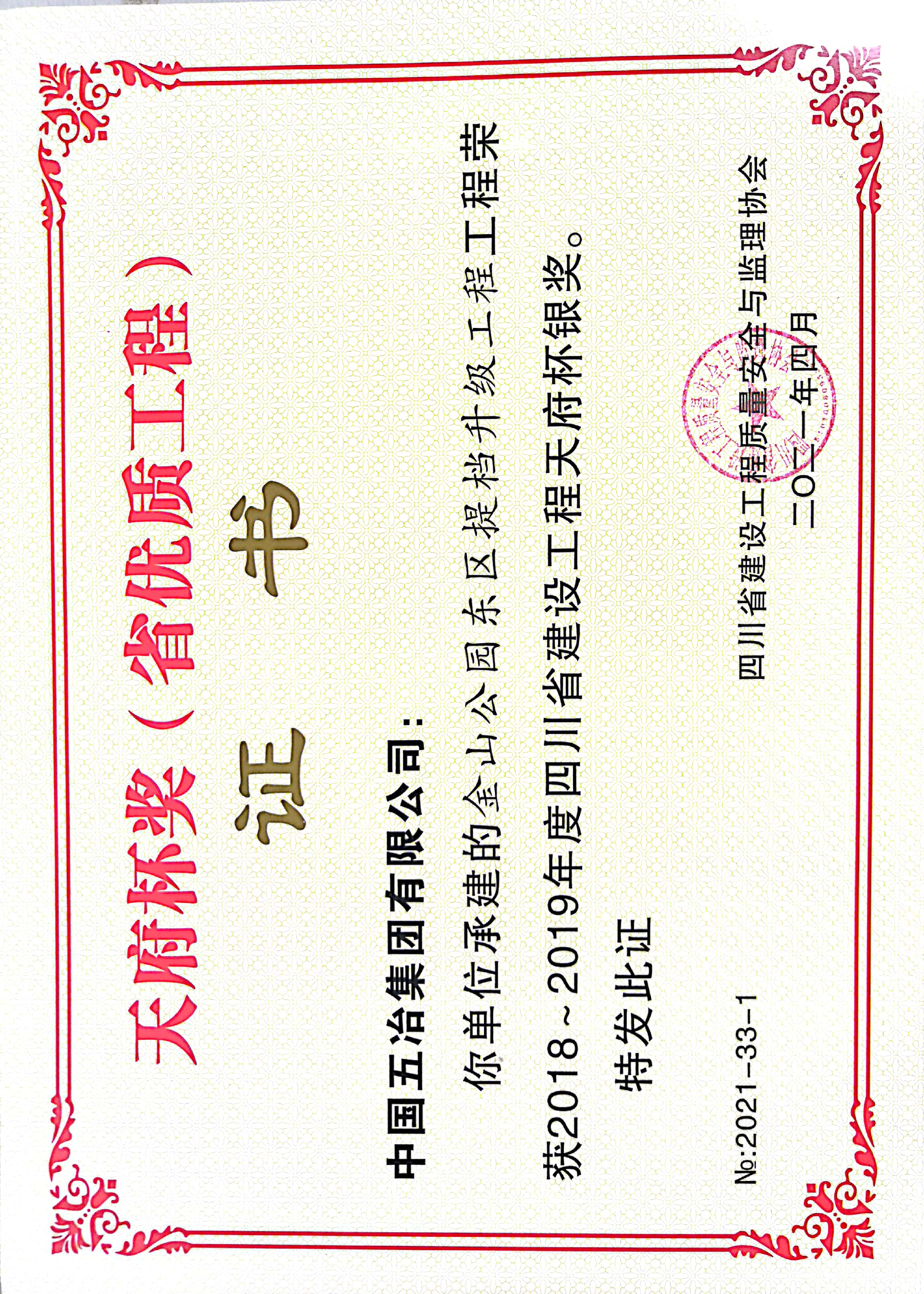 金山公園東區(qū)提檔升級(jí)工程-2018~2019年度四川省建設(shè)工程天府杯銀獎(jiǎng)