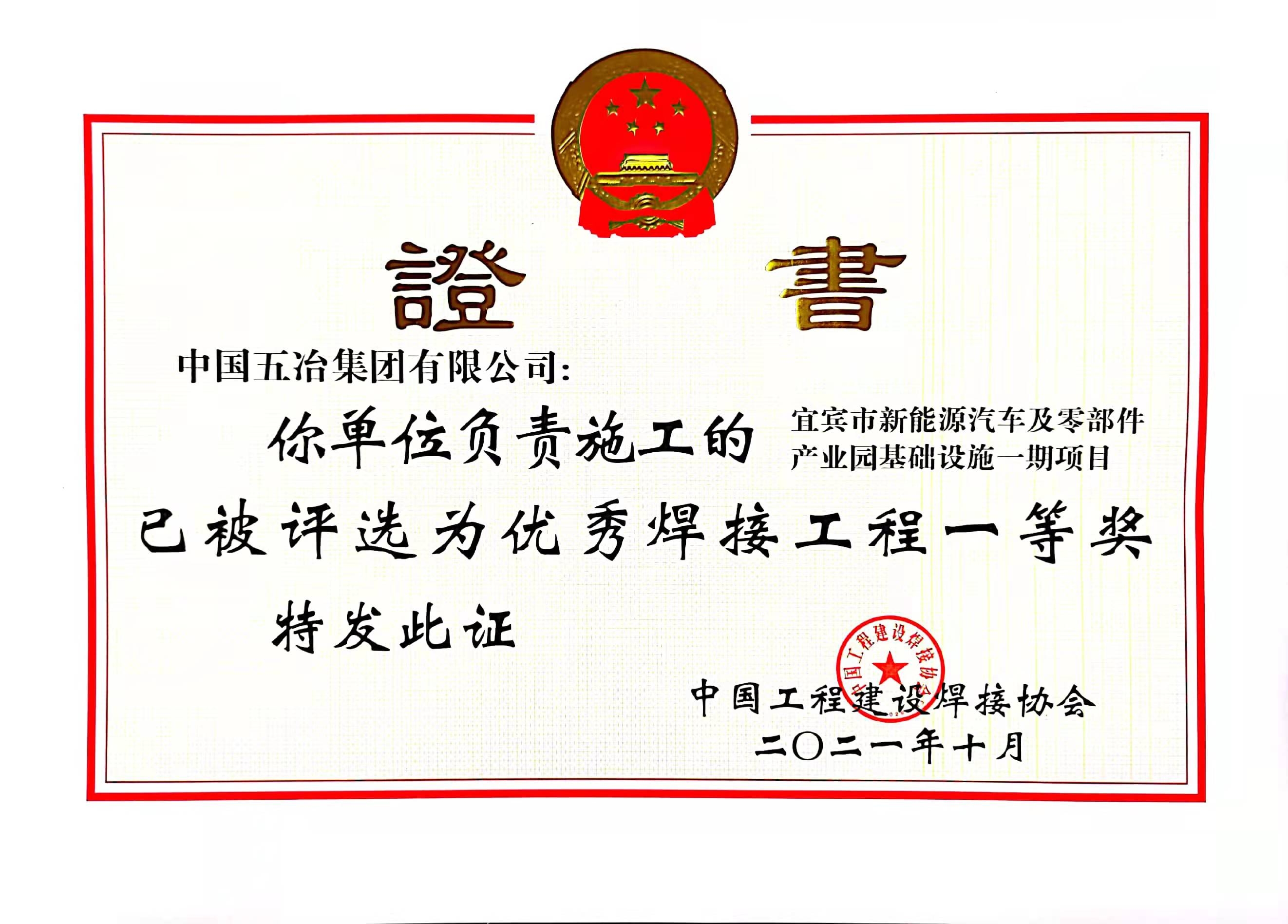 宜賓市新能源汽車(chē)及零部件產(chǎn)業(yè)園 基礎(chǔ)設(shè)施一期項(xiàng)目-2021年度全國(guó)優(yōu)秀焊接工程一等獎(jiǎng)