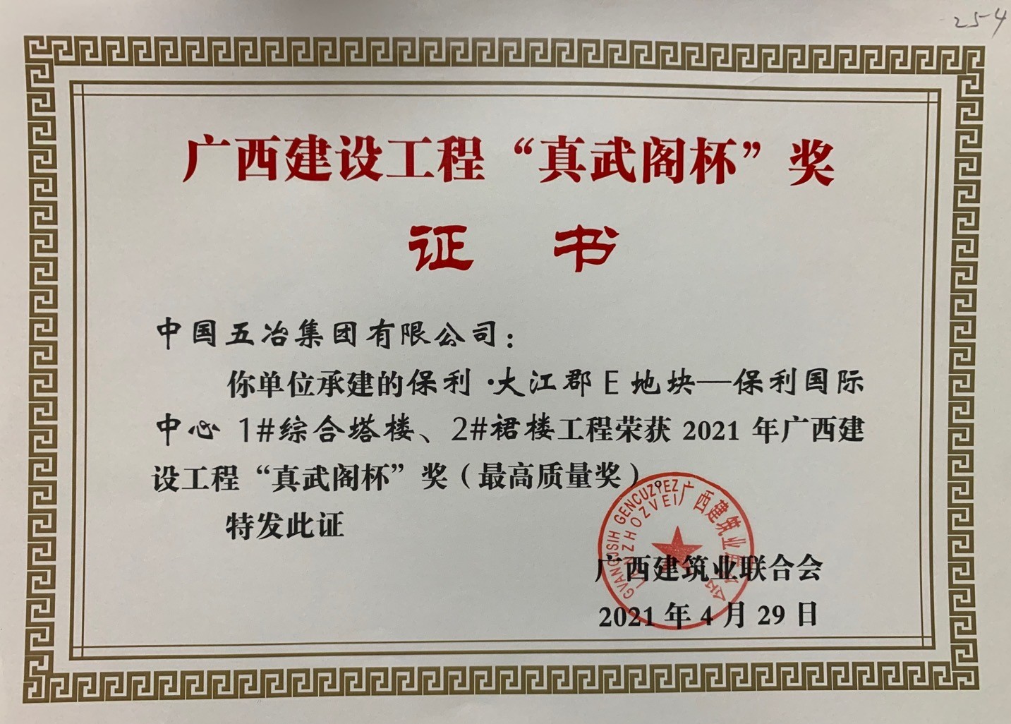 保利.大江郡E地塊-保利國際中心1#綜合塔樓、2#裙樓工程—2021年廣西建設(shè)真武閣杯獎