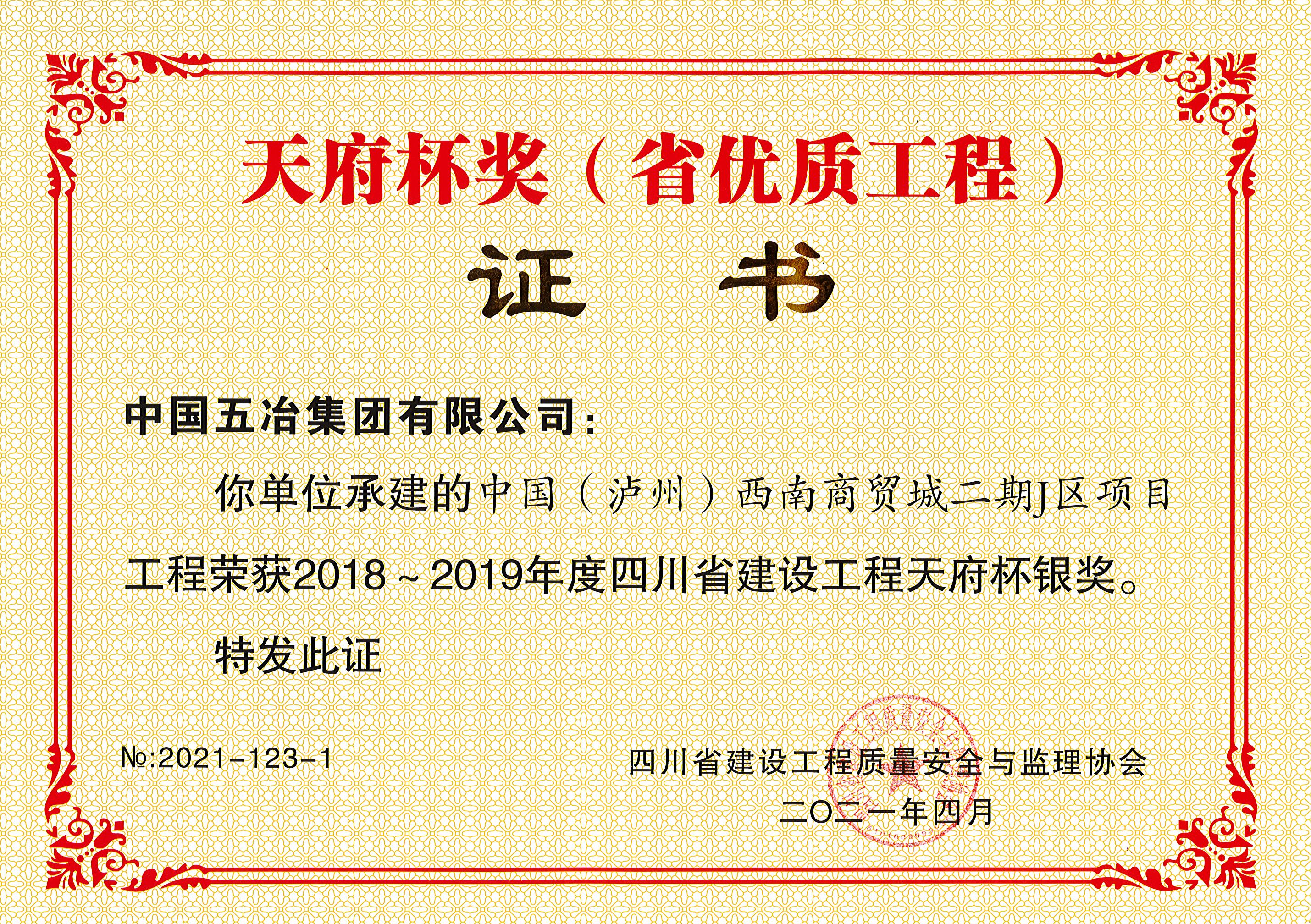 中國(瀘州)西南商貿(mào)城二期J區(qū)項目—2018-2019年度四川省建設(shè)工程天府杯銀獎