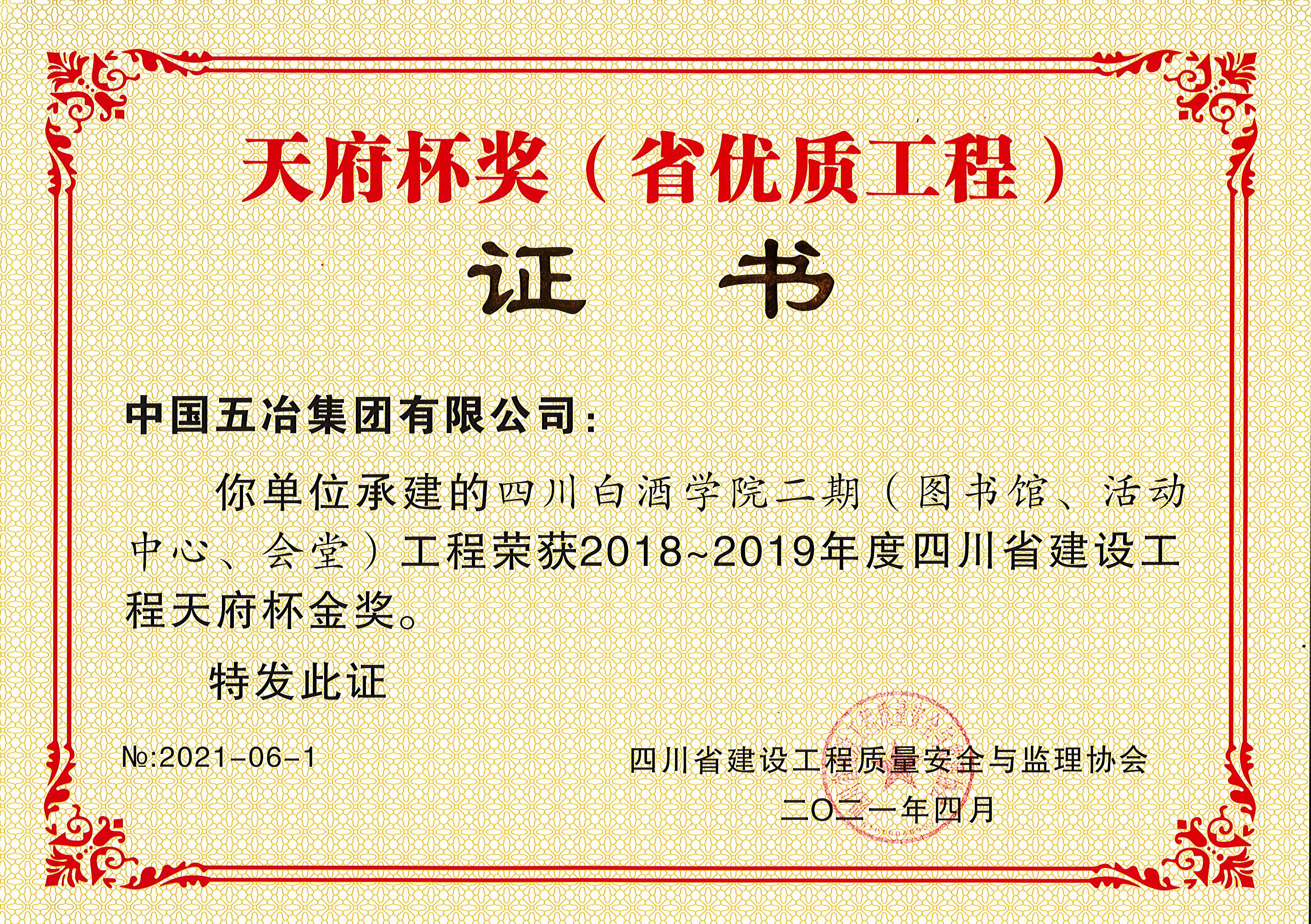 四川白酒學(xué)院二期(圖書館、活動中心、會堂)工程—2018-2019年度四川省建設(shè)工程天府杯金獎
