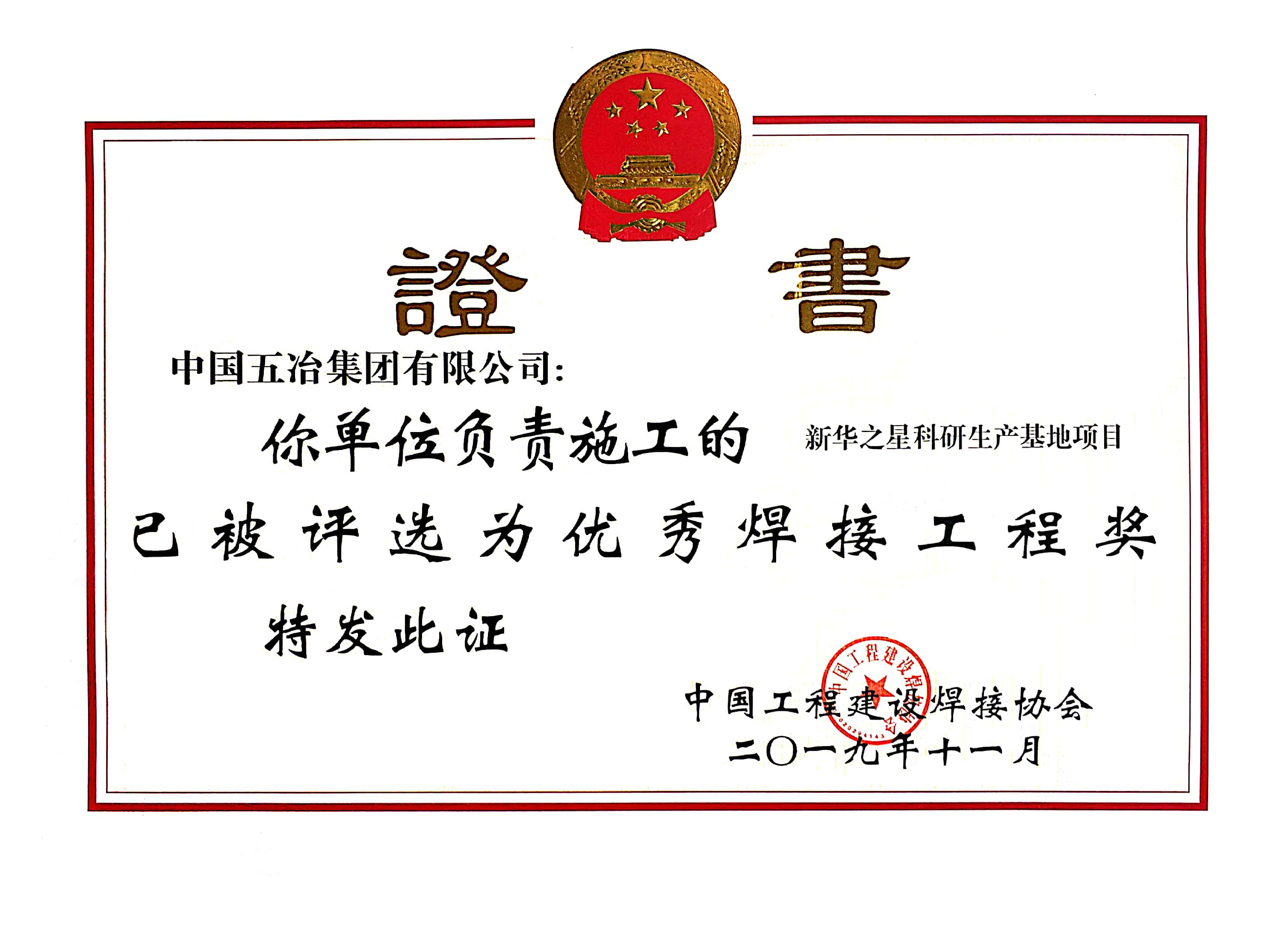 新華之星科研生產(chǎn)基地項(xiàng)目-2019年度全國(guó)優(yōu)秀焊接工程獎(jiǎng)