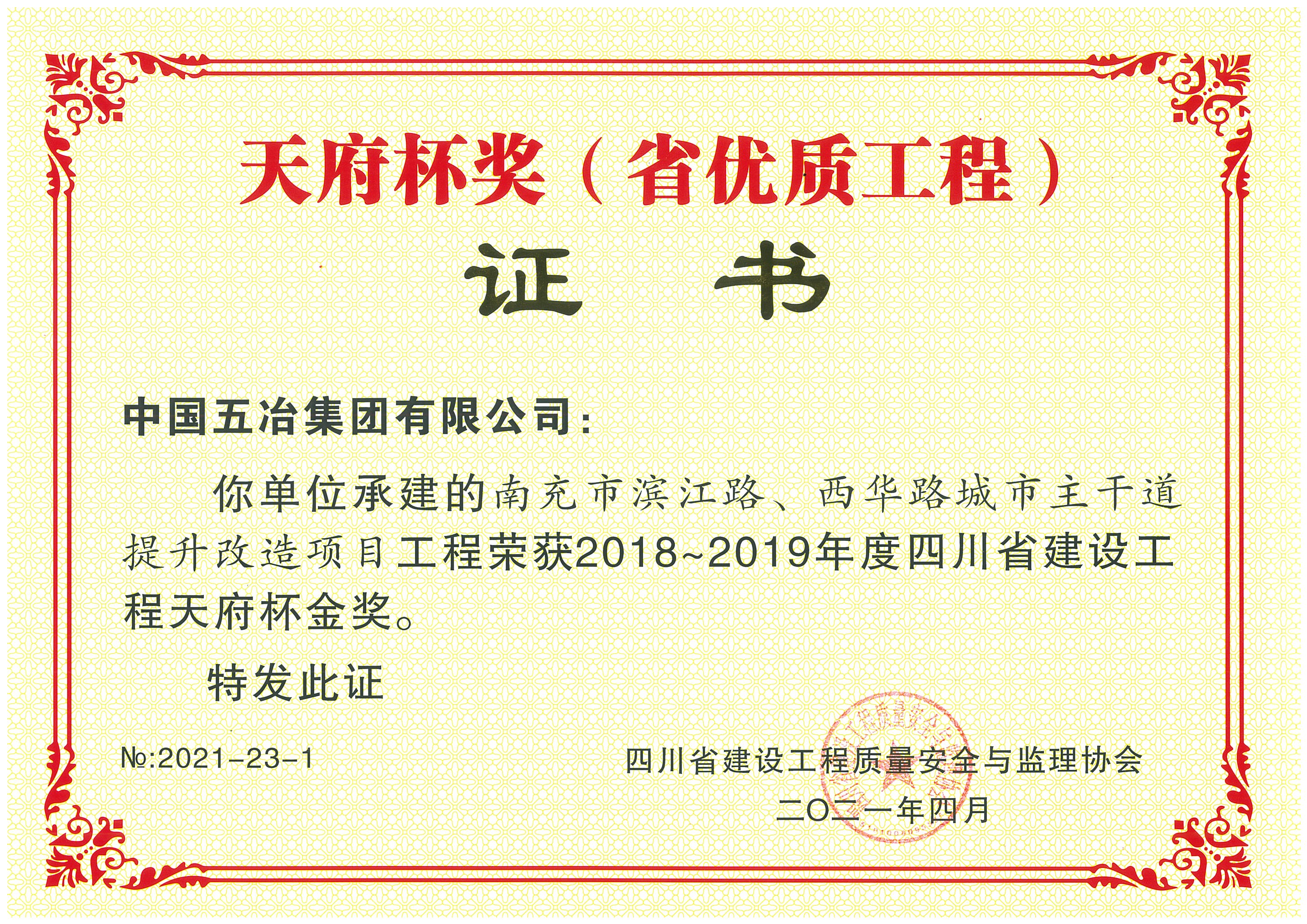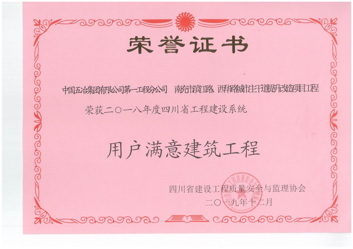 14-南充市濱江路、西華路城市主干道提升改造項(xiàng)目-2018年度四川省用戶(hù)滿(mǎn)意建筑工程證書(shū)