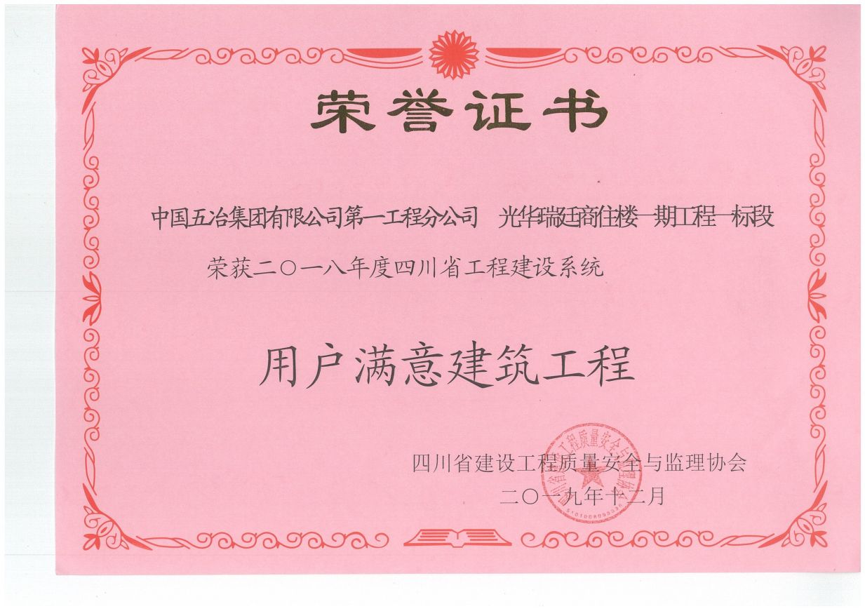 光華瑞廷商住樓一期工程一標(biāo)段項(xiàng)目--2018年度四川省用戶(hù)滿(mǎn)意建筑工程證書(shū)