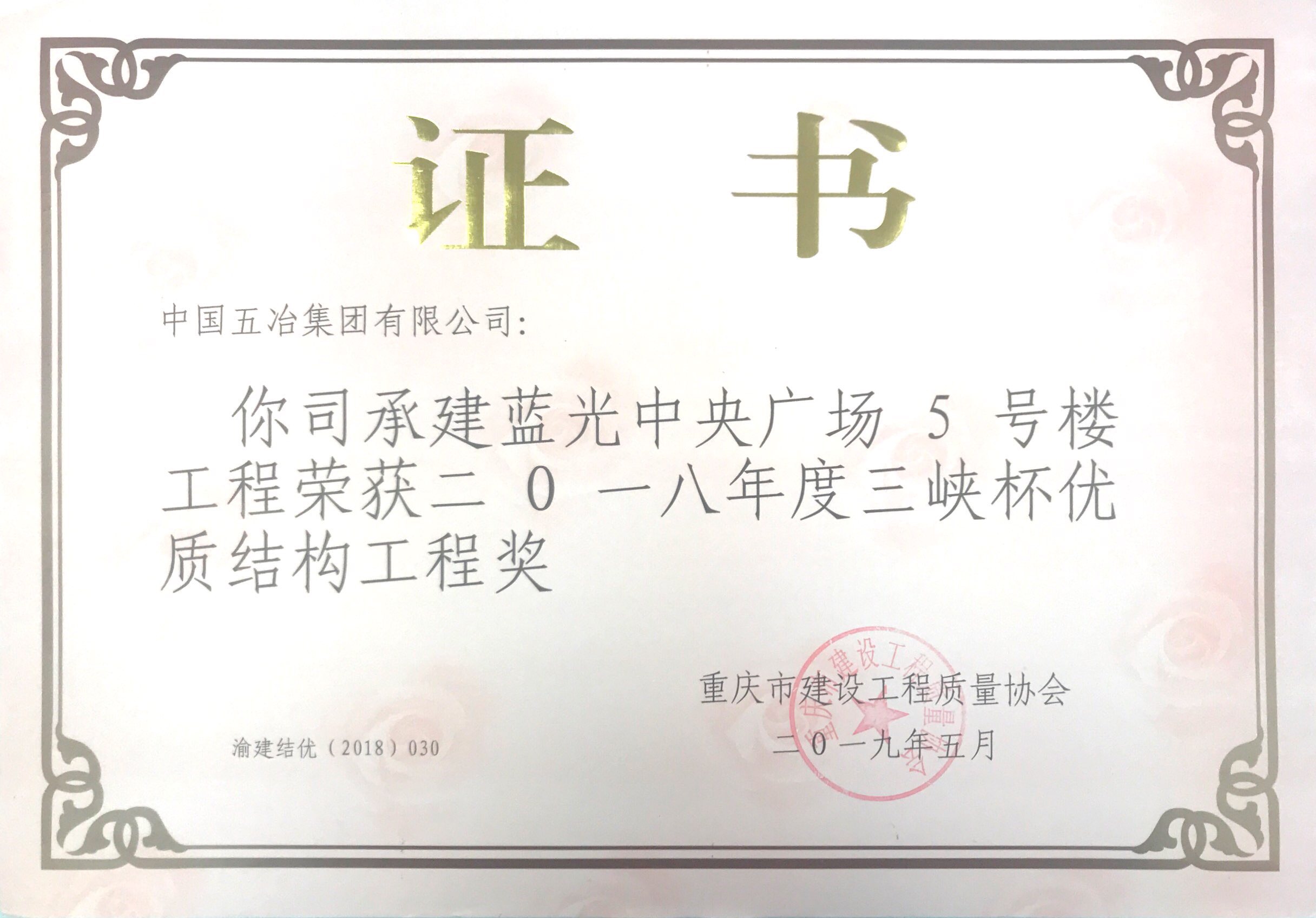 藍(lán)光中央廣場(chǎng)5號(hào)樓-2018年度重慶市三峽杯