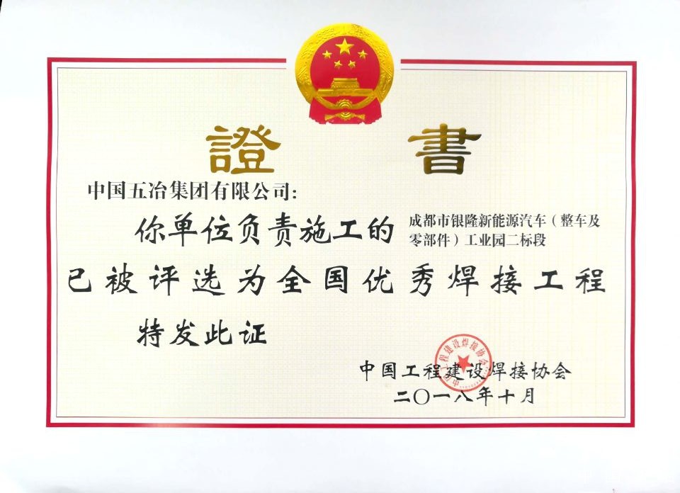 成都市銀隆新能源汽車(整車及零部件)工業(yè)園二標(biāo)段-2018年度全國優(yōu)秀焊接工程