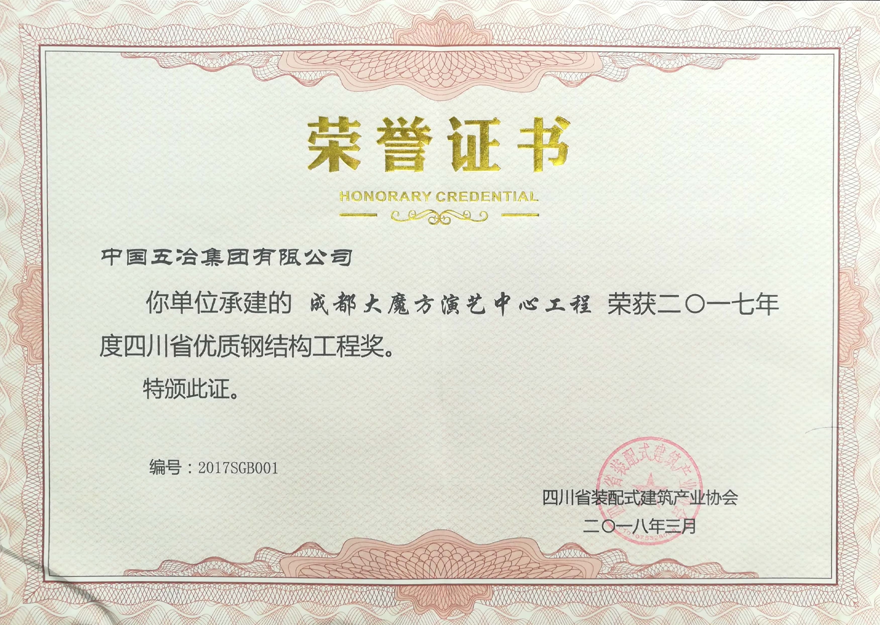 成都大魔方演藝中心項(xiàng)目-2017年度四川省優(yōu)質(zhì)鋼結(jié)構(gòu)工程獎