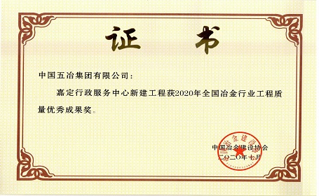 嘉定服務(wù)中心項(xiàng)目——2020年全國(guó)冶金行業(yè)工程質(zhì)量?jī)?yōu)秀成果獎(jiǎng)
