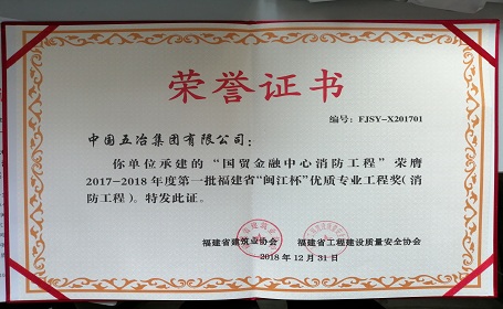 國(guó)貿(mào)金融中心消防工程——2017—2018年度第一批福建省“閩江杯”優(yōu)質(zhì)專業(yè)工程獎(jiǎng)(消防工程)
