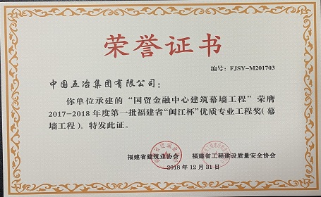 國(guó)貿(mào)金融中心建筑幕墻工程——2017—2018年度第一批福建省“閩江杯”優(yōu)質(zhì)專業(yè)工程獎(jiǎng)(幕墻工程)