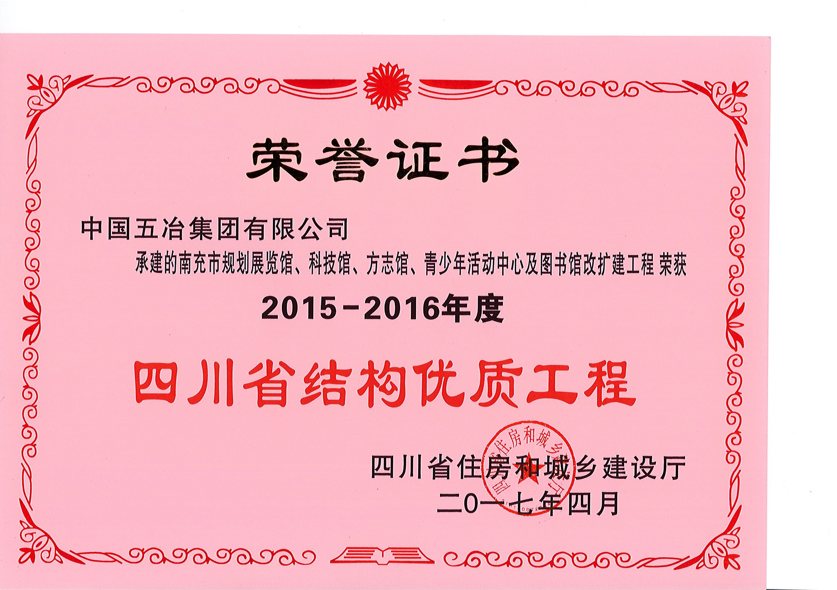 南充市規(guī)劃展覽館、科技館、方志館、青少年活動中心及圖書館改擴建工程—2015-2016年度四川省結(jié)構(gòu)優(yōu)質(zhì)工程