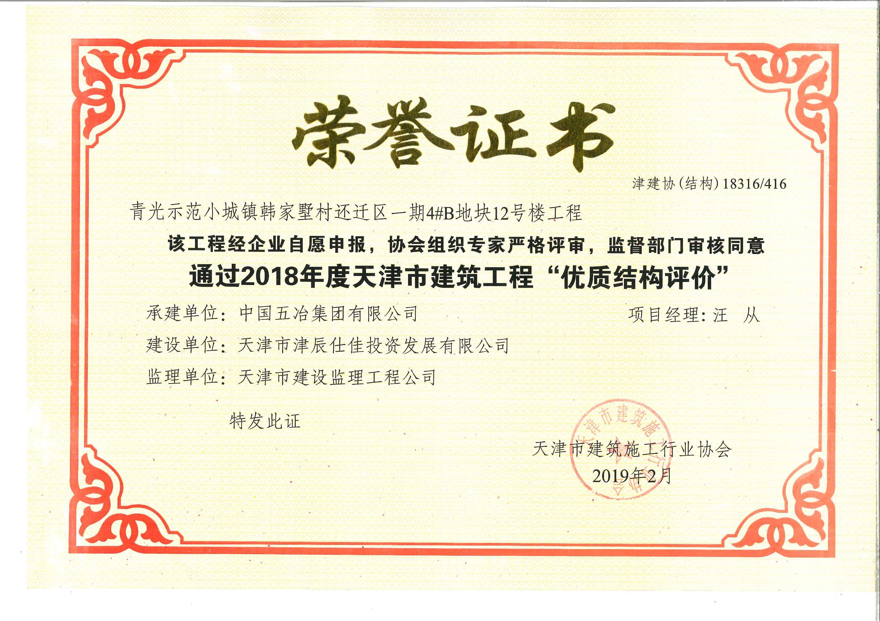 青光示范小城鎮(zhèn)韓家墅村還遷區(qū)-期4#B地塊12號樓工程--2018年度天津市建筑工程“優(yōu)質結構評價”