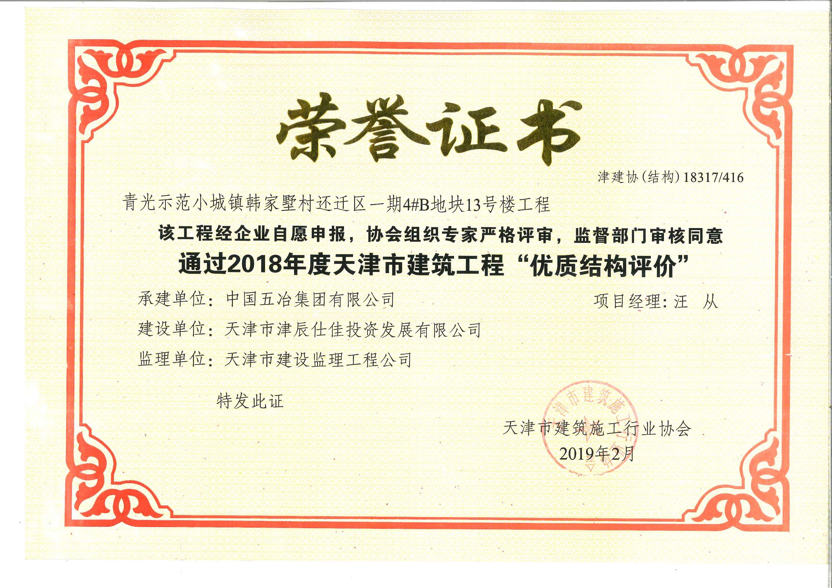 青光示范小城鎮(zhèn)韓家墅村還遷區(qū)-期4#B地塊13號樓工程--2018年度天津市建筑工程“優(yōu)質結構評價”
