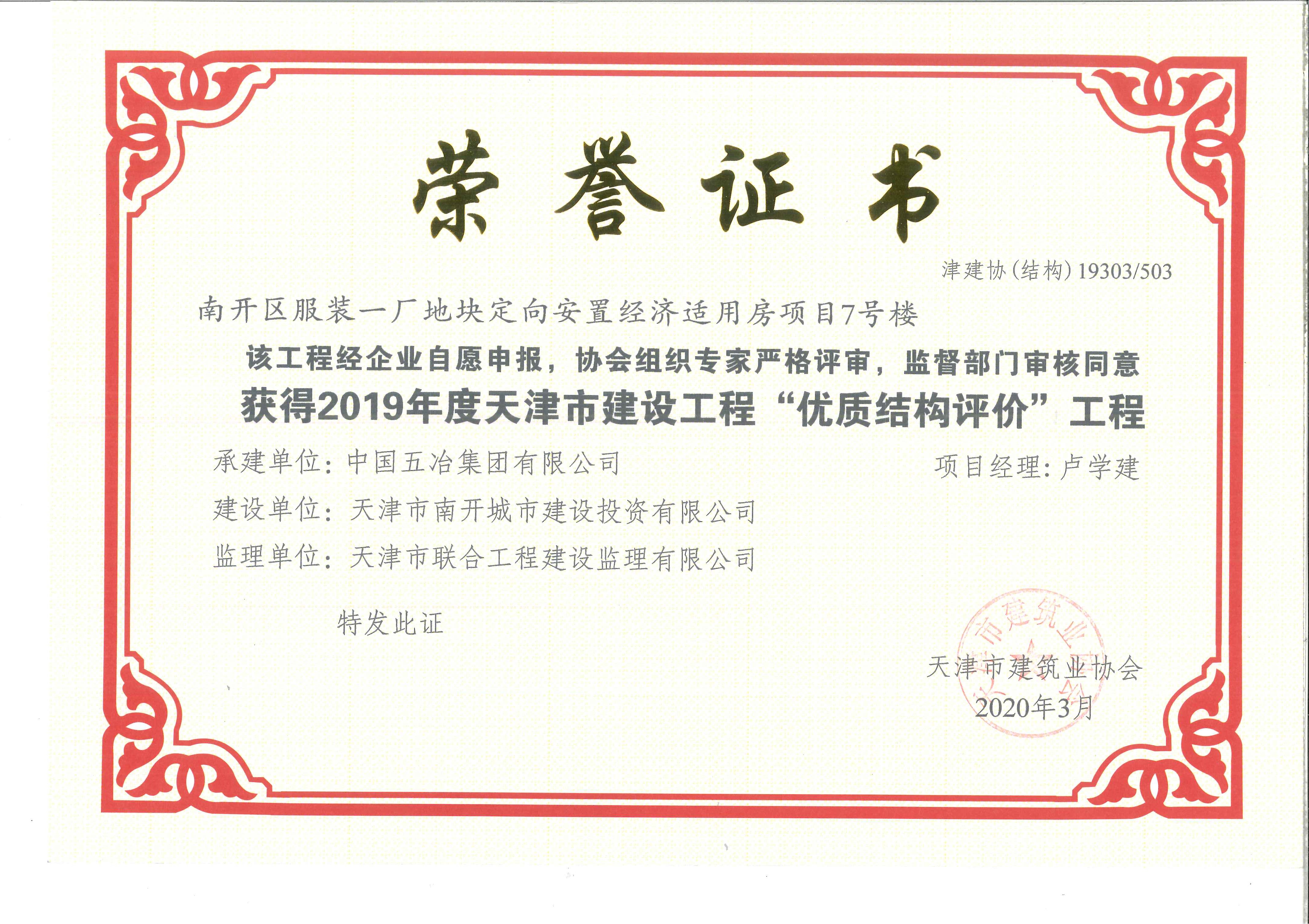 南開區(qū)服裝一廠地塊定向安置經濟適用房-7#樓--2019年度天津優(yōu)質結構評價