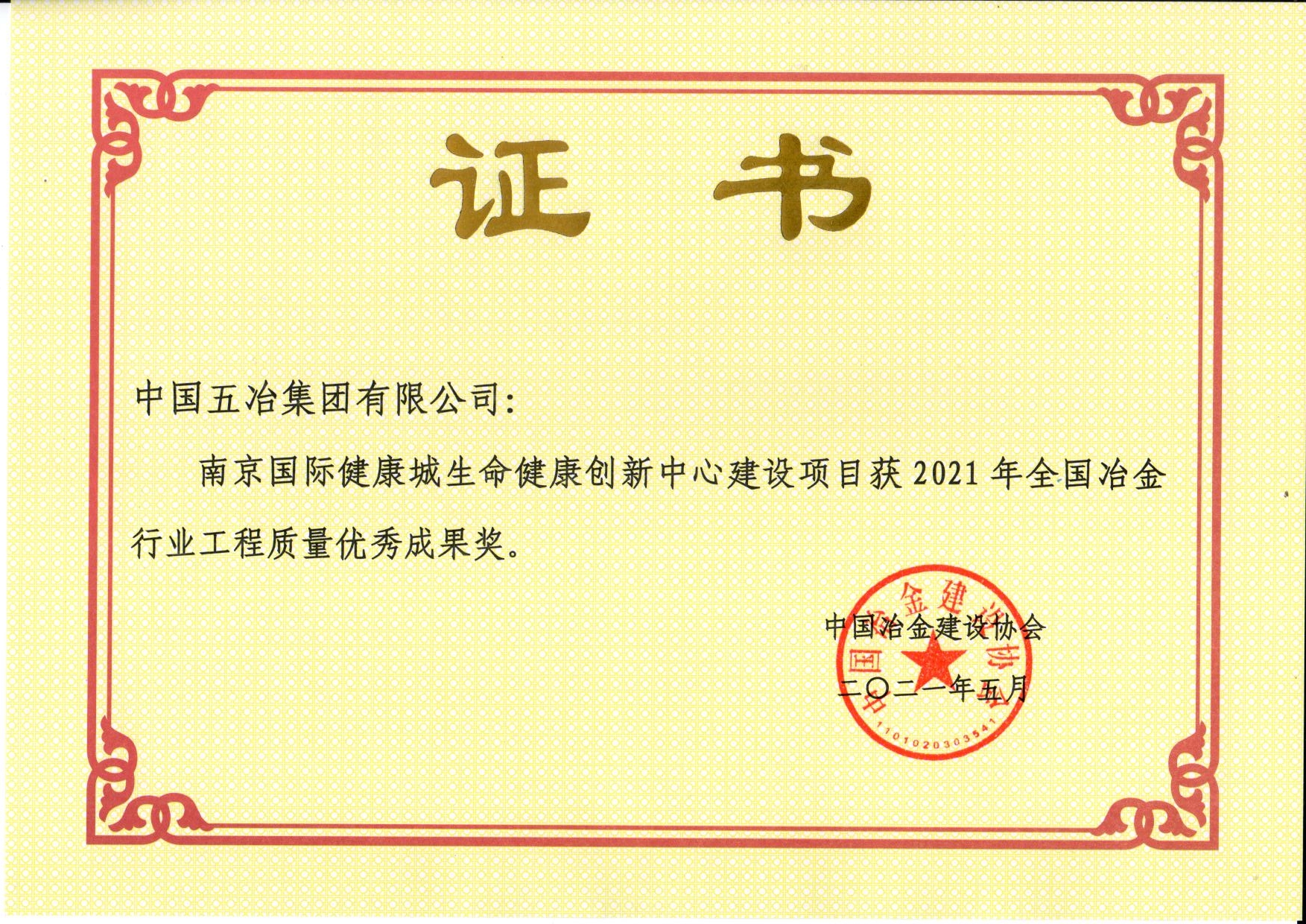 南京國際健康城生命健康創(chuàng)新中心建設項目——2021年全國冶金行業(yè)工程質量優(yōu)秀成果獎