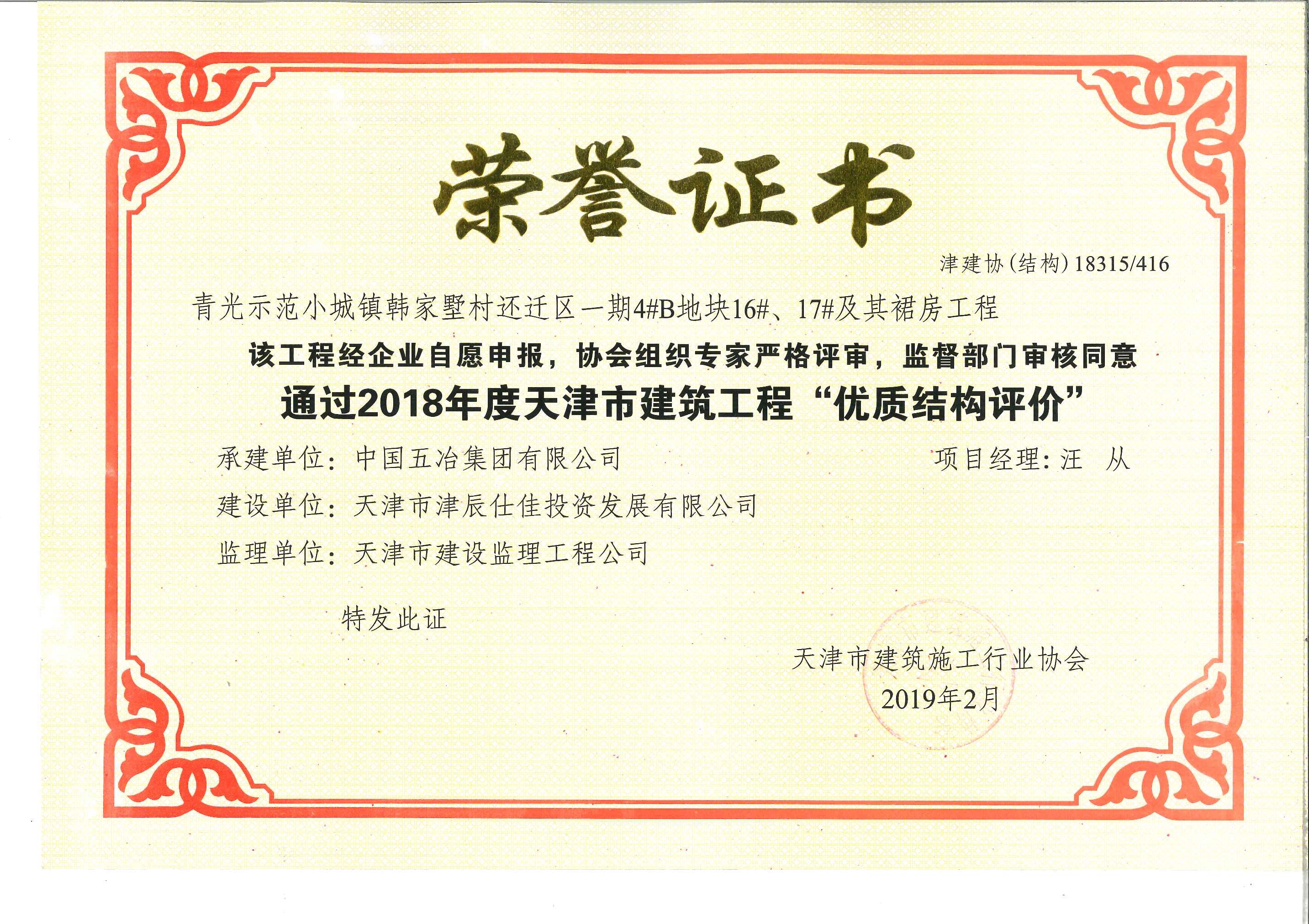 青光示范小城鎮(zhèn)韓家墅村還遷區(qū)一期4#B地塊16#、17#及其裙房工程--2018年度天津市建筑工程“優(yōu)質結構評價”