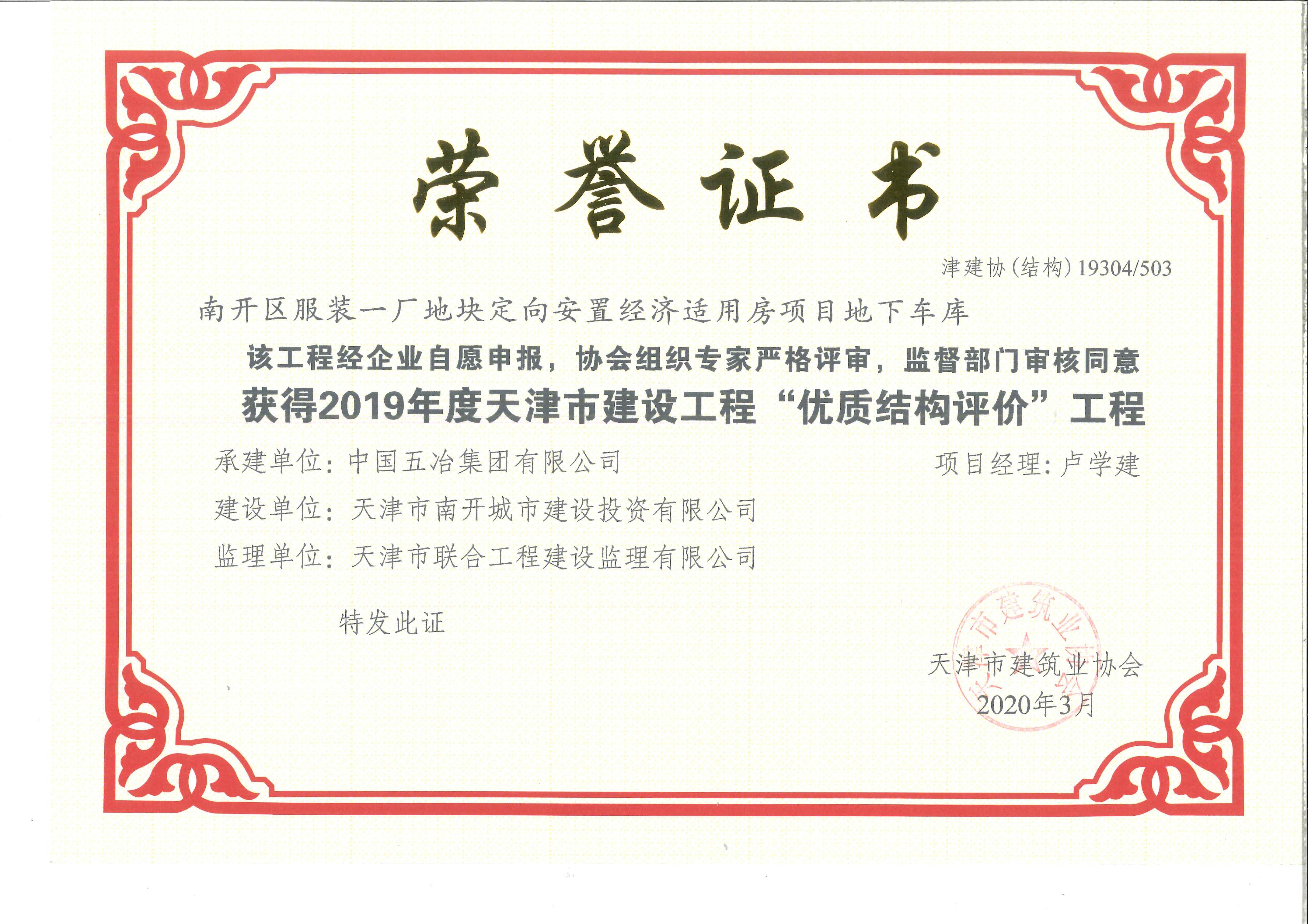 南開區(qū)服裝一廠地塊定向安置經濟適用房-地下車庫--2019年度天津優(yōu)質結構評價