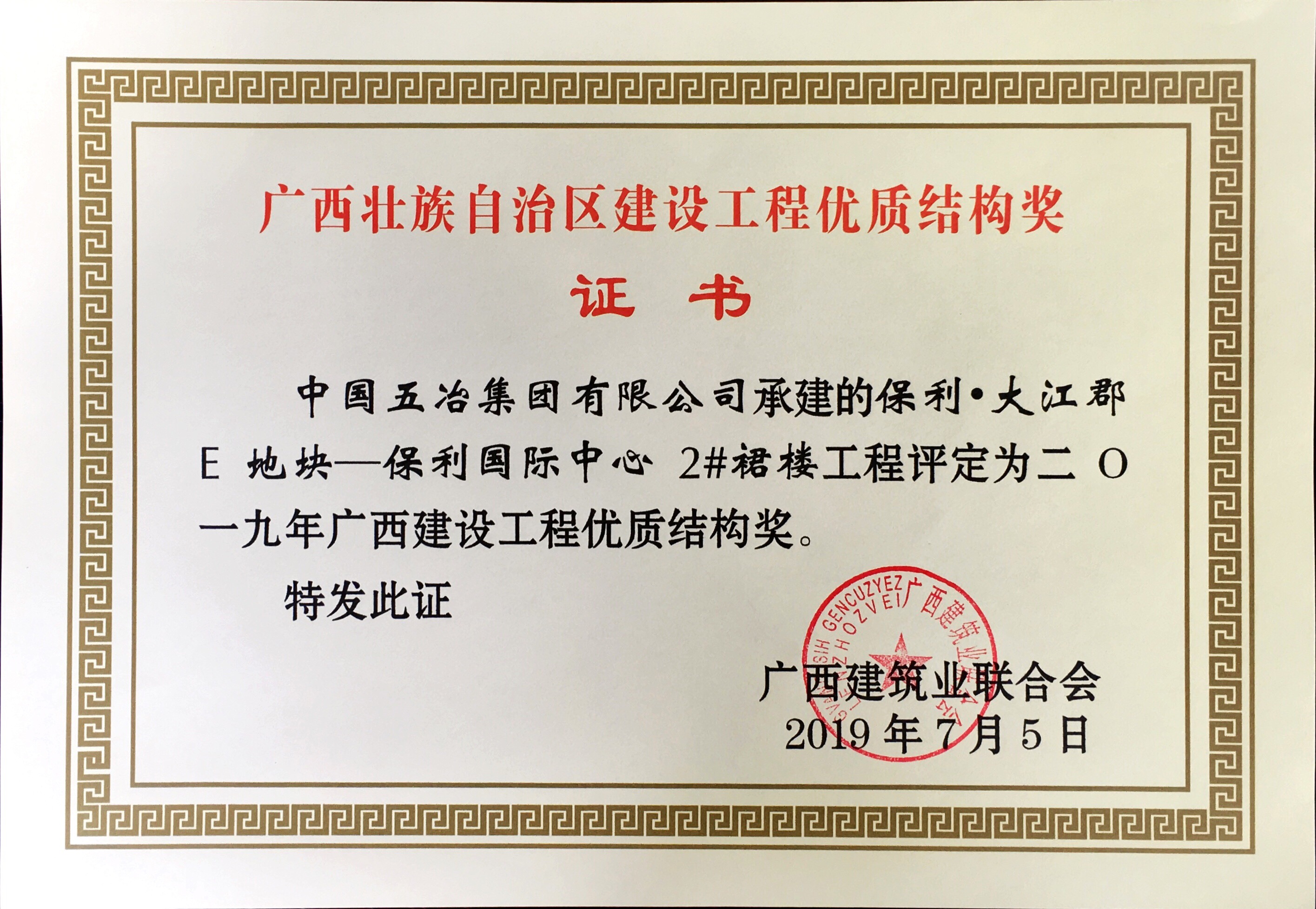 保利.大江郡E地塊-保利國際中心2#裙樓工程—2019年廣西建設工程優(yōu)質結構獎
