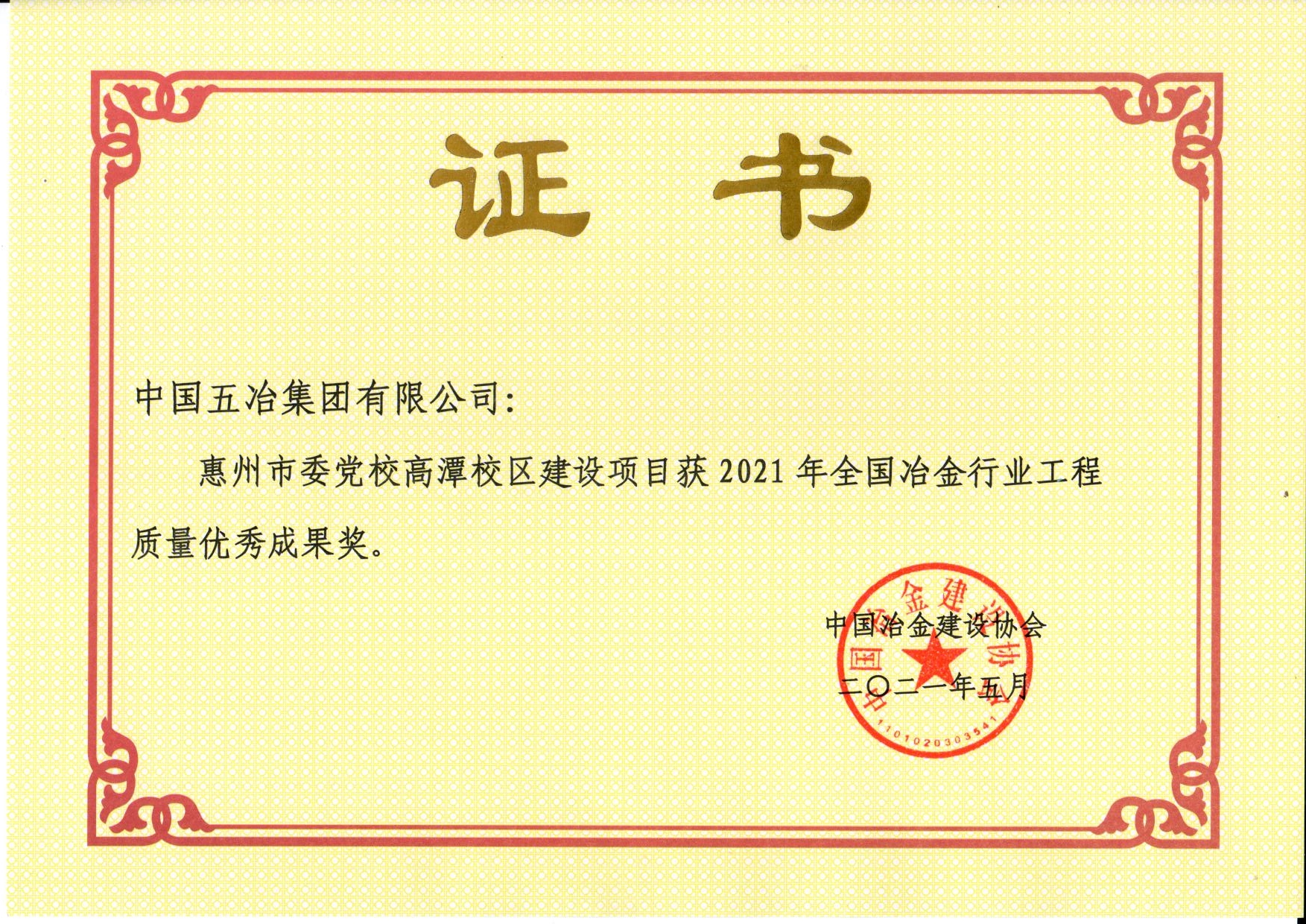 惠州市委黨校高潭校區(qū)建設項目——2021年全國冶金行業(yè)工程質量優(yōu)秀成果獎