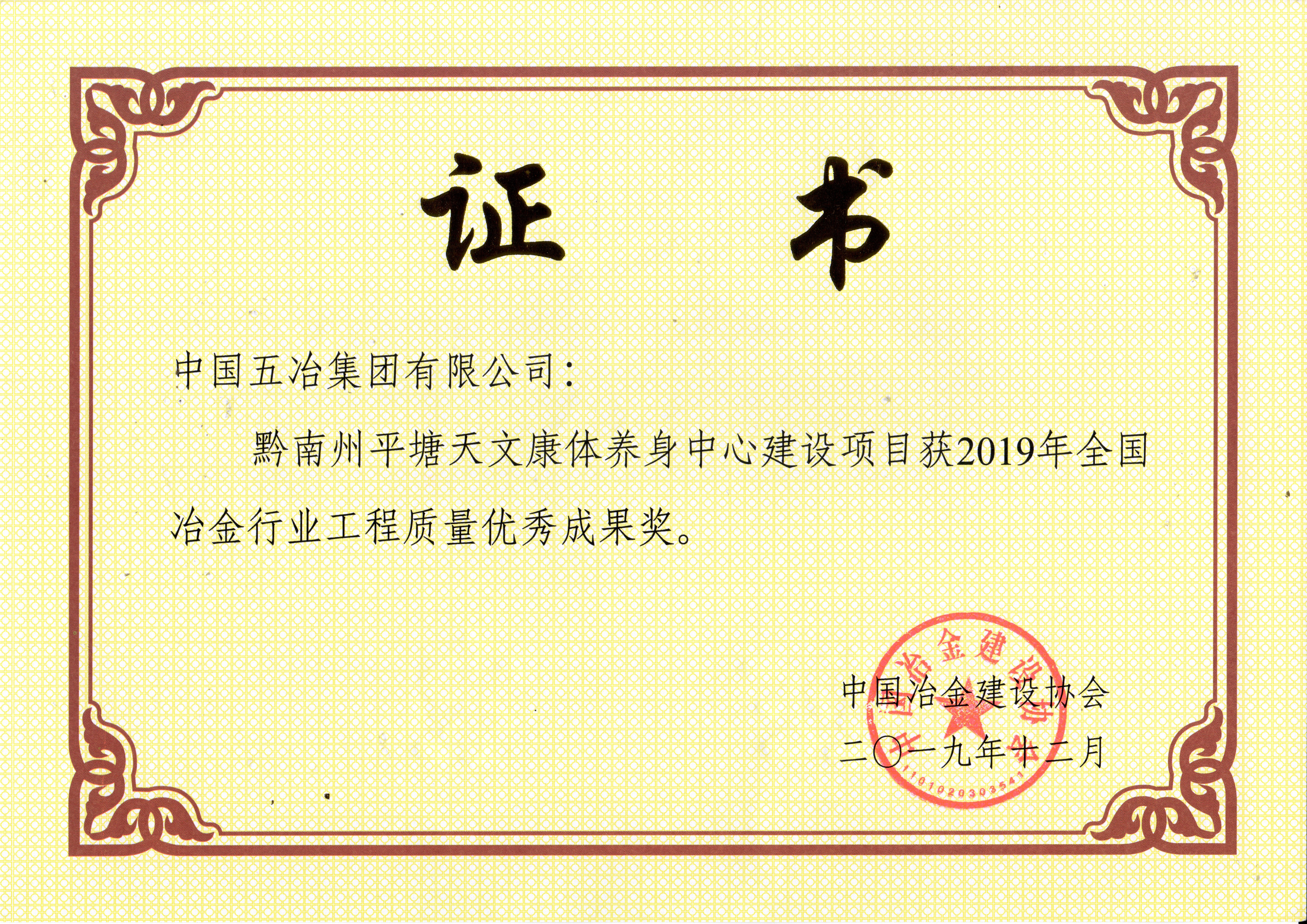 黔南州平塘天文康體養(yǎng)身中心建設項目——2019年度冶金行業(yè)工程質量優(yōu)秀成果