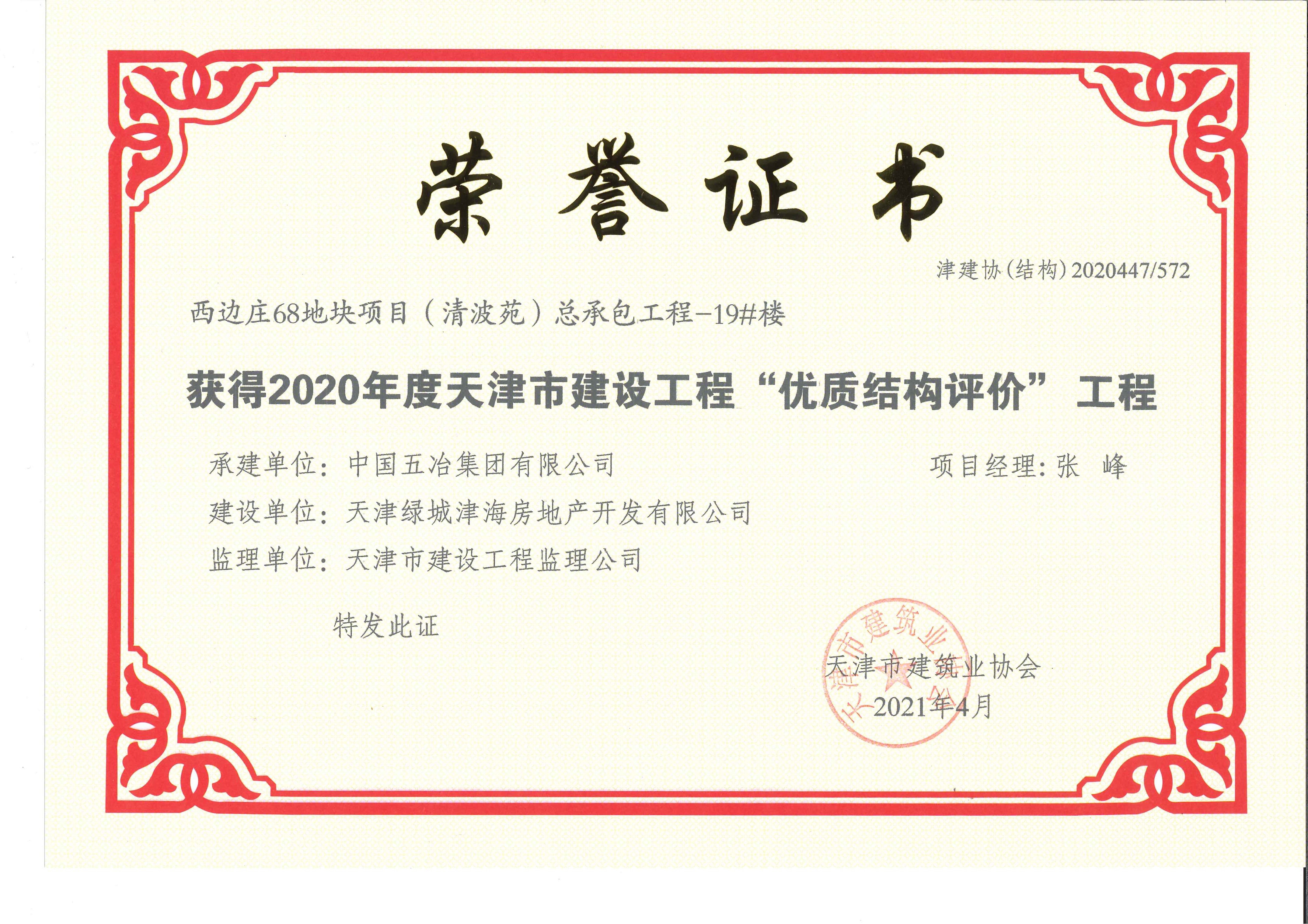 天津靜海綠城(西邊莊68地塊項目-清波苑總承包工程-19號樓)--2020年天津優(yōu)質(zhì)結(jié)構(gòu)評價