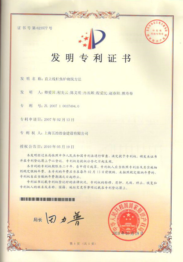 直立線桿焦?fàn)t砌筑方法 ZL 200710037494.0