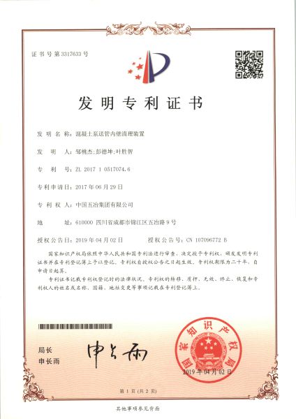 混凝土泵送管內(nèi)壁清理裝置 ZL201710517074.6