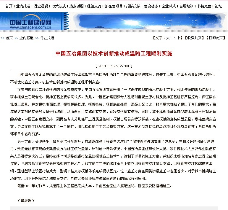 上一篇:中國冶金建設(shè)協(xié)會網(wǎng)報道:中國五冶集團(tuán)在成溫路項目首創(chuàng)的“鋼桁架無支架懸掛...