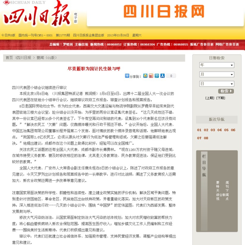 四川日報報道:盡責(zé)履職為國計民生鼓與呼