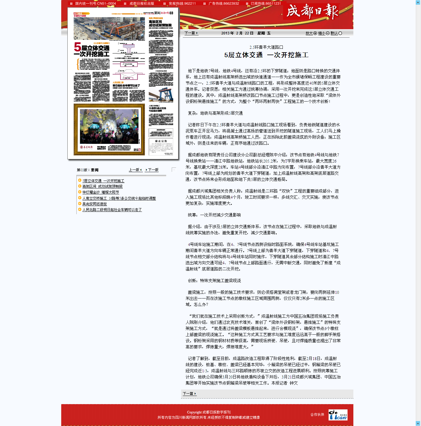 成都日報報道:2.5環(huán)青羊大道路口 5層立體交通 一次開挖施工