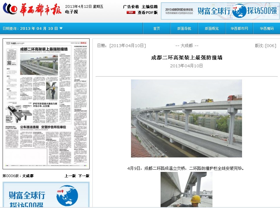 上一篇:天府早報(bào)報(bào)道:二環(huán)路首段高架防撞墻亮相