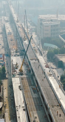 在整個高架橋橋面全線貫通之后,下一步,中國五冶則將全力以赴地進(jìn)行橋面系以及底層道路等的建設(shè)施工。