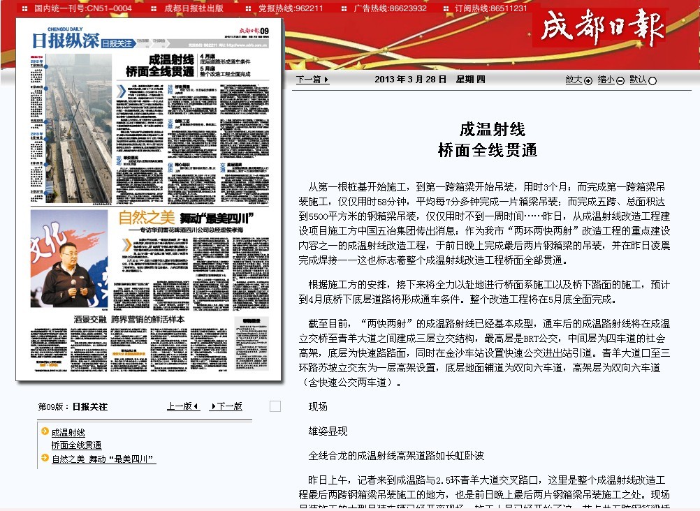 全線貫通的消息,也讓附近的市民倍感興奮。家住羅家碾的張女士昨日上午從此路口經(jīng)過時,不經(jīng)意間便發(fā)現(xiàn)原來這個路口“空缺”的高架橋,已全部吊裝完畢,“等二環(huán)路還有這個成溫路全線貫通的時候,我一定要上去開車好好體驗(yàn)一盤?!?/span>