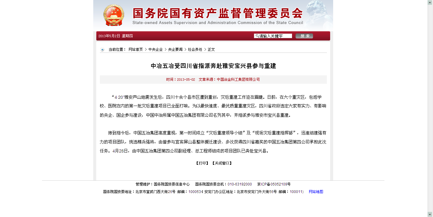 下一篇:中國工程建設(shè)網(wǎng)報道:四川省政府點將中國五冶集團(tuán)奔赴寶興縣參加災(zāi)后重建戰(zhàn)役