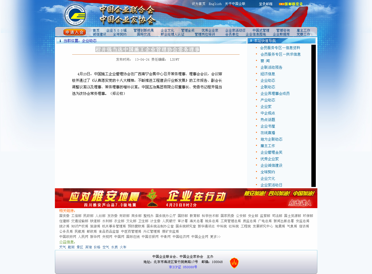 上一篇:中國企業(yè)聯(lián)合會(huì)網(wǎng)報(bào)道:中國五冶集團(tuán)兩名建筑結(jié)構(gòu)專家支援“蘆山”地震災(zāi)區(qū)