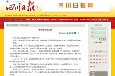10月17日,四川日報(bào)以《逐夢百年看五冶》為題對中國五冶集團(tuán)進(jìn)行了整版重點(diǎn)報(bào)道,內(nèi)文以“開啟夢想、跨越之夢、騰飛之夢”回顧了中國五冶集團(tuán)六十五周年的發(fā)展歷程,并對建設(shè)百年五冶的偉大目標(biāo)進(jìn)行了展望。