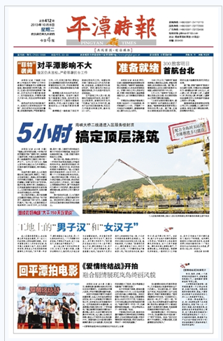 《平潭時報》頭版報道中國五冶集團海峽大橋二線通道入?yún)^(qū)服務(wù)樓封頂