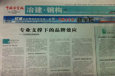 8月9日,《中國(guó)冶金報(bào)》05版以“專業(yè)支撐下的品牌效應(yīng)”為題,從轉(zhuǎn)變思路,迎來(lái)破繭重生;苦練內(nèi)功,催開(kāi)轉(zhuǎn)發(fā)展之花;技術(shù)先行,張專業(yè)化之翼;優(yōu)化產(chǎn)品,提升產(chǎn)品經(jīng)營(yíng)層次;拓展市場(chǎng),馳騁海內(nèi)贏口碑等五個(gè)方面,刊文報(bào)道了中國(guó)五冶集團(tuán)鋼結(jié)構(gòu)產(chǎn)業(yè)發(fā)展概況,對(duì)中國(guó)五冶鋼構(gòu)專業(yè)化支撐品牌發(fā)展的情況進(jìn)行了詳細(xì)梳理。