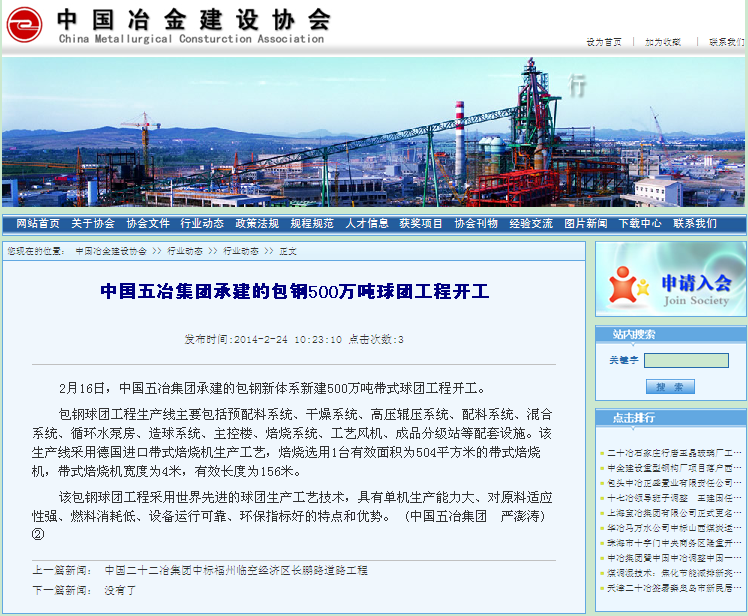 下一篇:中國冶金建設(shè)協(xié)會報道:中國五冶集團(tuán)中標(biāo)龍鋼燒結(jié)項目A、E標(biāo)段