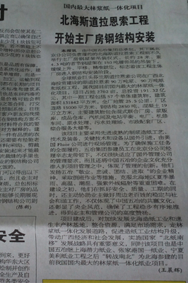 文章指出,北海斯道拉恩索工程由全球紙業(yè)巨頭芬蘭斯道拉恩索公司在廣西北海投資建設(shè)的,屬我國(guó)目前國(guó)內(nèi)最大的林漿紙一體化項(xiàng)目,該項(xiàng)目主要采用先進(jìn)成熟的制漿造紙工藝、技術(shù)及裝備,關(guān)鍵技術(shù)和設(shè)備從國(guó)外引進(jìn),由美國(guó)Fluor公司現(xiàn)場(chǎng)管理,該項(xiàng)目建成后,將加快發(fā)展北海造紙工業(yè)和速生豐產(chǎn)林基地,對(duì)帶動(dòng)廣西經(jīng)濟(jì)和社會(huì)發(fā)展,實(shí)施國(guó)家“北紙南移”發(fā)展具有重要意義。建設(shè)過(guò)程中,中國(guó)五冶參建員工不僅很快適應(yīng)了國(guó)外管理公司的管理要求,還將中國(guó)五冶的企業(yè)文化充分滲入到項(xiàng)目管理之中,體現(xiàn)了管理的創(chuàng)新。建設(shè)之初,中國(guó)五冶在抓安全、質(zhì)量、工期的同時(shí),還主動(dòng)協(xié)助業(yè)主做好周邊百姓的穩(wěn)定和社會(huì)和諧工作,不僅體現(xiàn)了中國(guó)五冶的共贏文化,還彰顯了央企風(fēng)范,確保了工程穩(wěn)步有序地推進(jìn),得到業(yè)主和管理公司的高度贊揚(yáng)。(廖安秀)