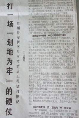 4月2日,建筑時(shí)報(bào)第3207期第六版以《打一場(chǎng)“劃地為牢”的硬仗》為題,從“頂層設(shè)計(jì)一根線,串起公司層層萬條針”、“四大件標(biāo)配齊上陣,劃地為‘牢’創(chuàng)奇跡”、“在速度與轉(zhuǎn)型中演繹冰火之歌”三個(gè)層面對(duì)中國五冶承建的貴州貴安新區(qū)星河灣酒店的建設(shè)過程進(jìn)行了如實(shí)報(bào)道。