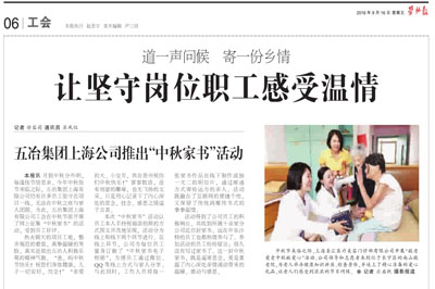 9月15日,中國五冶集團(tuán)“中秋家書”系列活動報道被《勞動報》頭版頭條刊載。