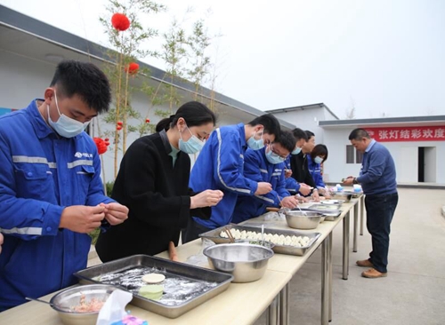 在四川成都,東安湖項(xiàng)目全體員工積極響應(yīng)號召就地過年,三十清晨,大家熱熱鬧鬧地布置起項(xiàng)目部,開展了迎新春包福餃活動,在大運(yùn)會主會場建設(shè)現(xiàn)場燃起了一番“越燒越旺”的奮進(jìn)情誼和五冶干勁。