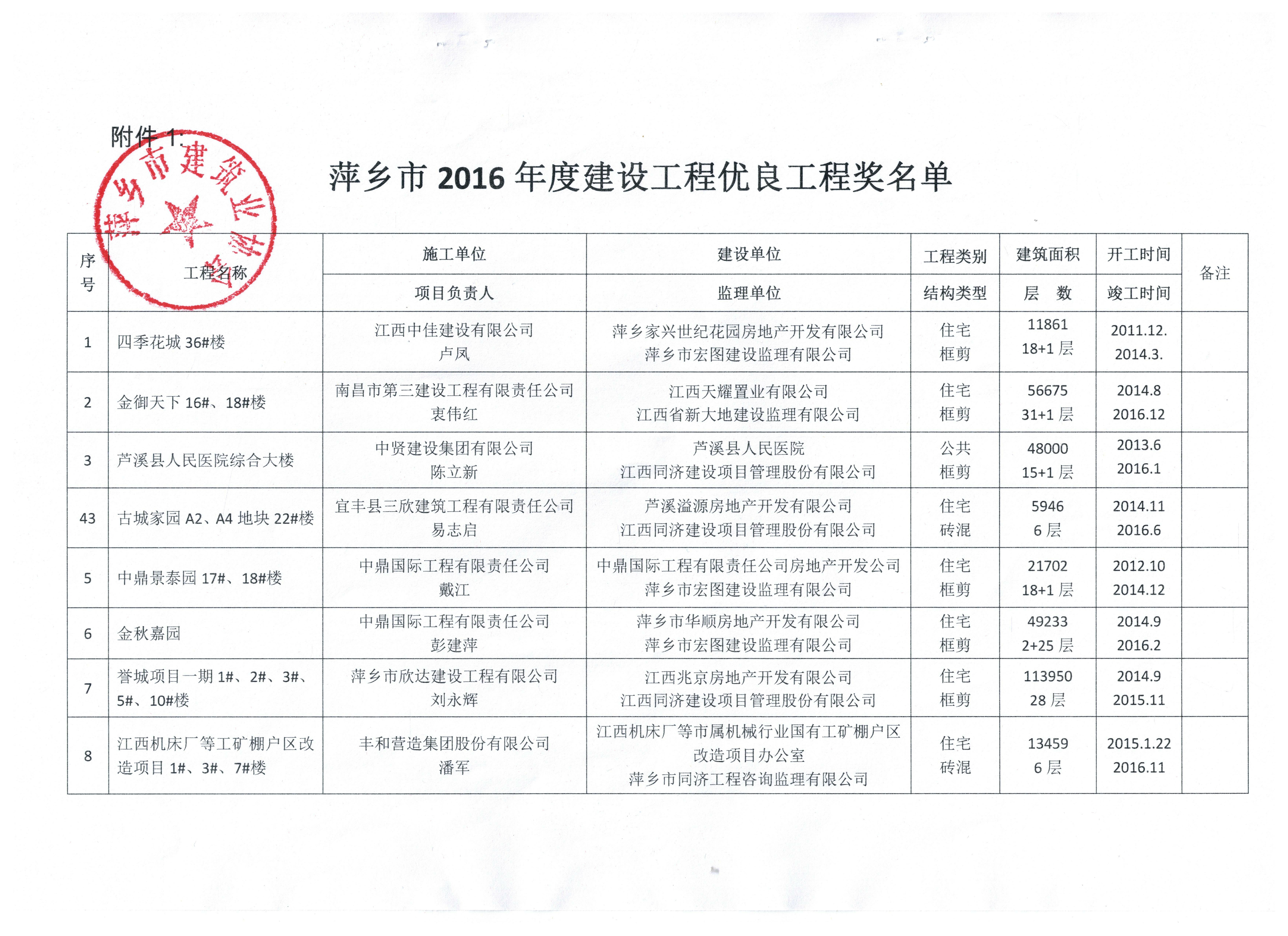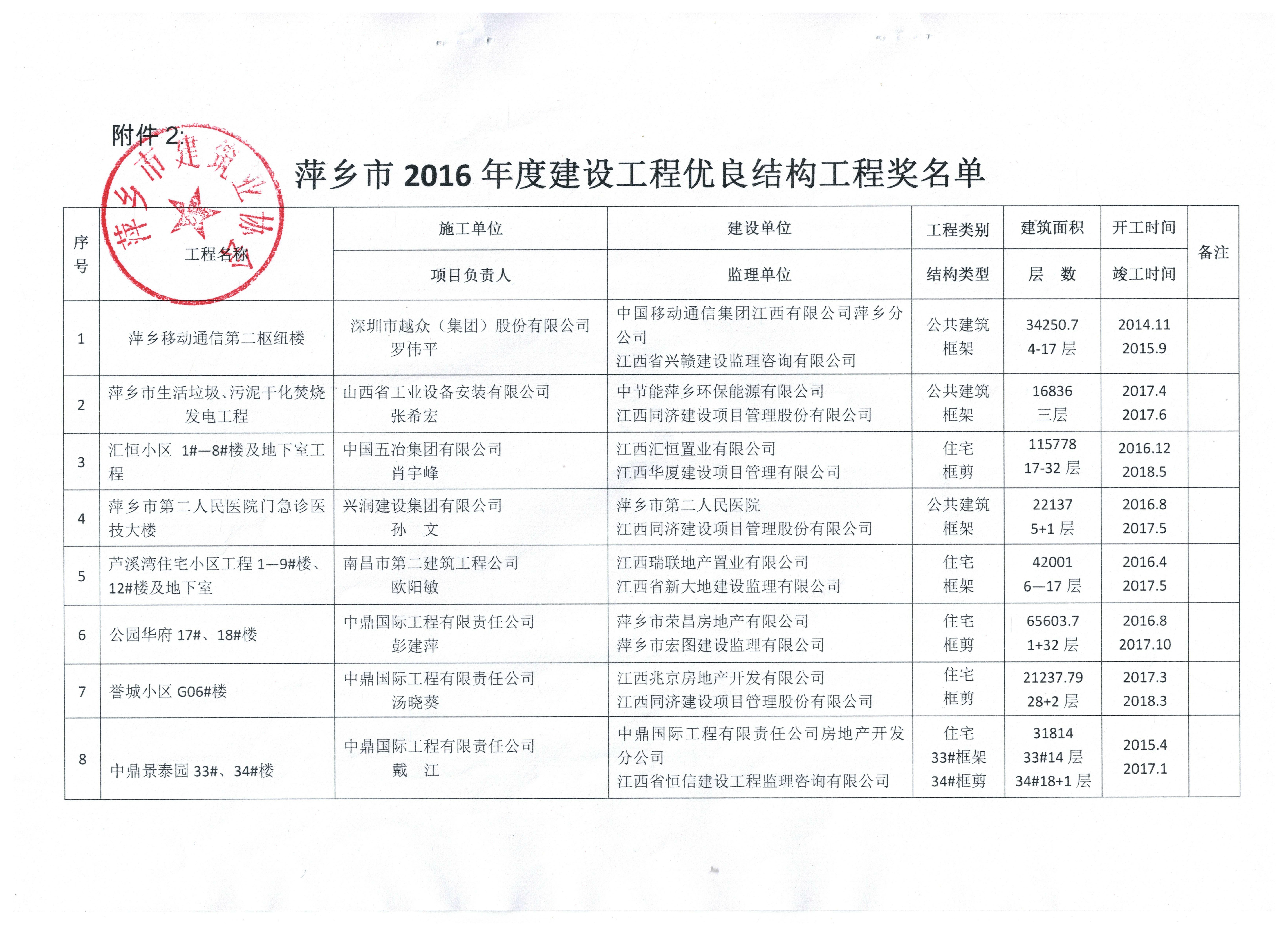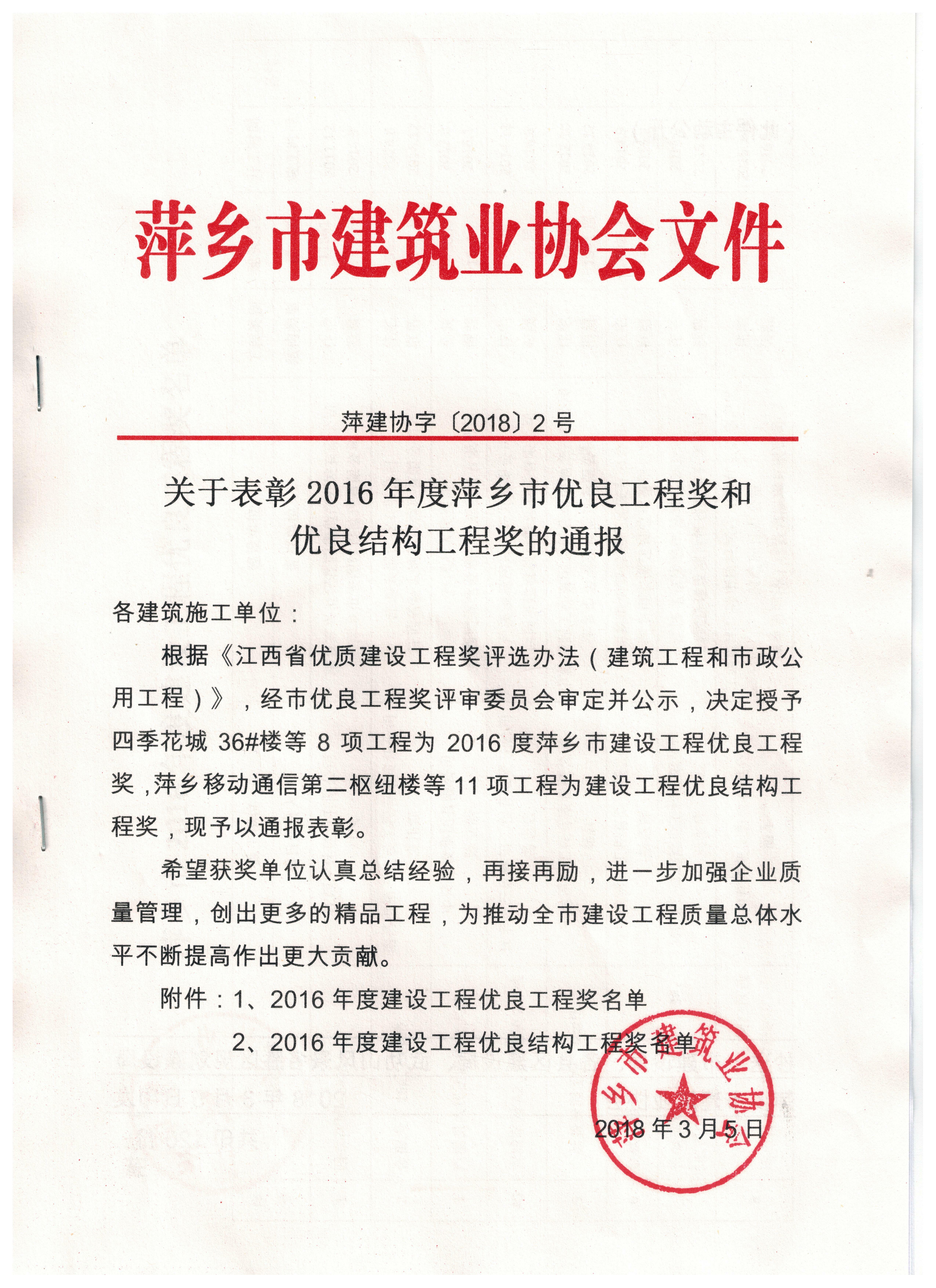 匯恒小區(qū)1#-8#樓及地下室工程榮獲2016年度萍鄉(xiāng)市建設(shè)工程優(yōu)良結(jié)構(gòu)工程獎