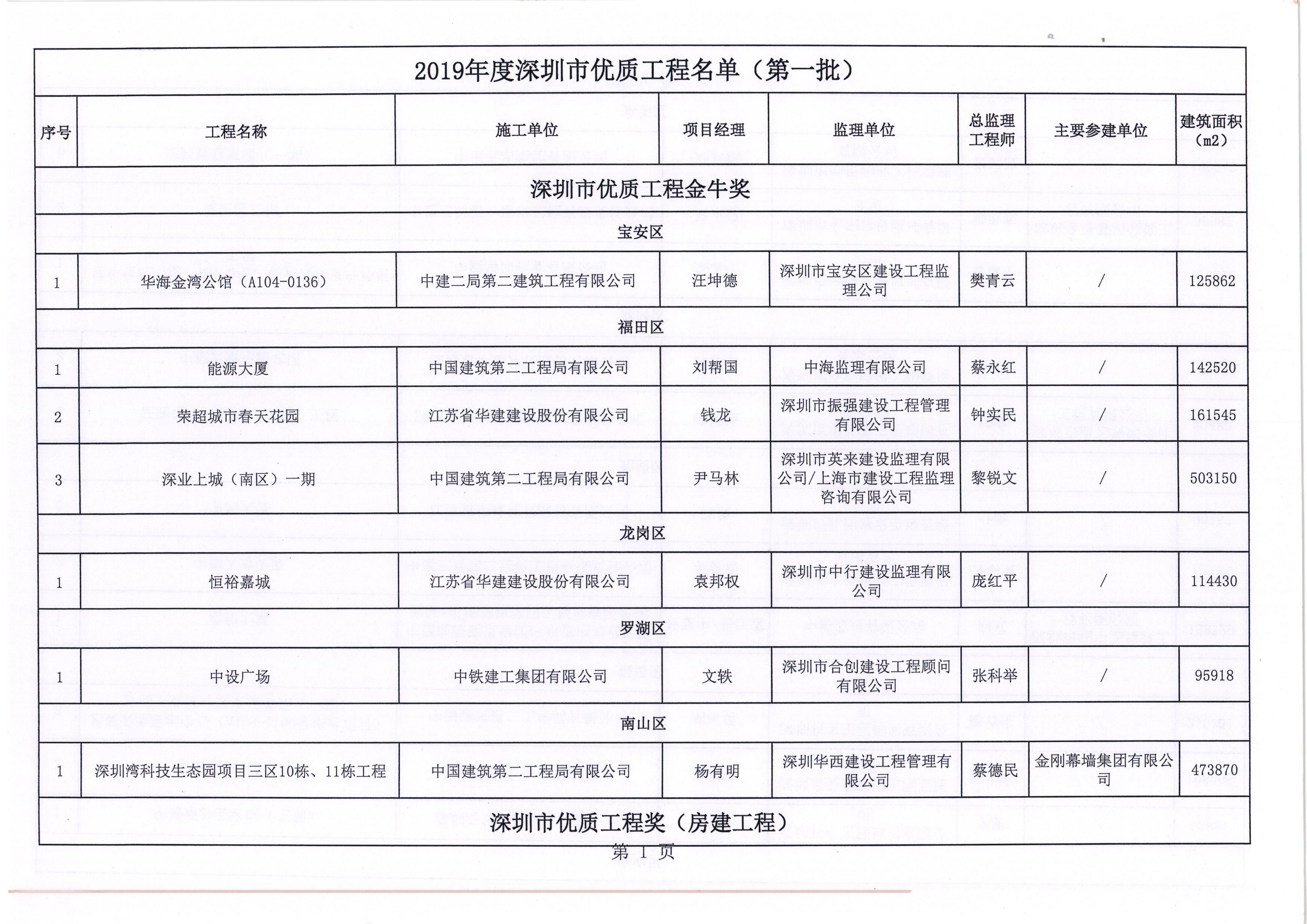 龍崗智慧家園(一期)榮獲2019年度第一批深圳市優(yōu)質(zhì)工程獎