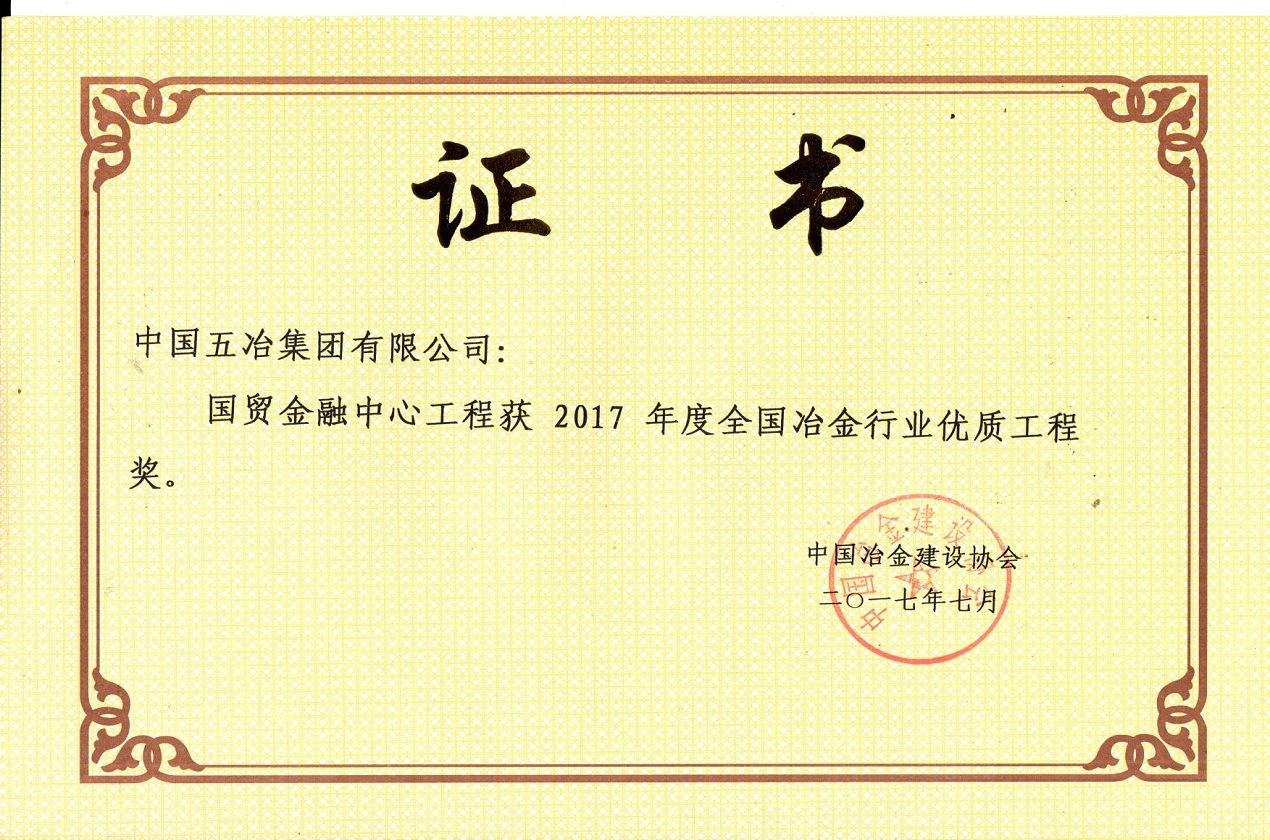 國貿(mào)金融中心工程獲2017年度全國冶金行業(yè)優(yōu)質(zhì)工程獎(jiǎng)