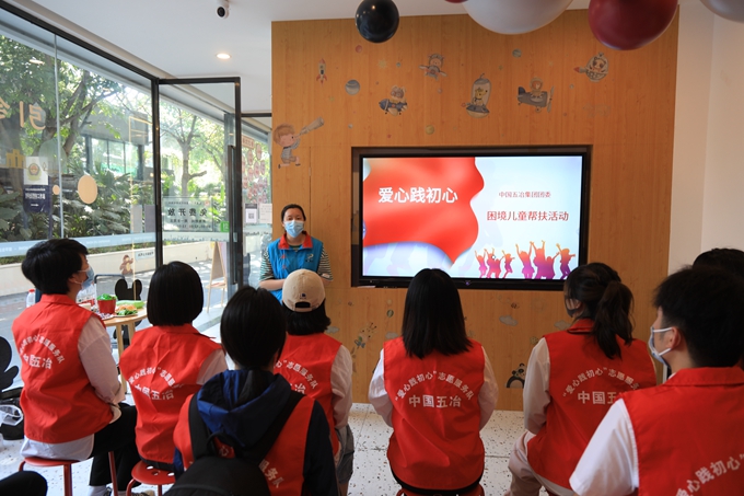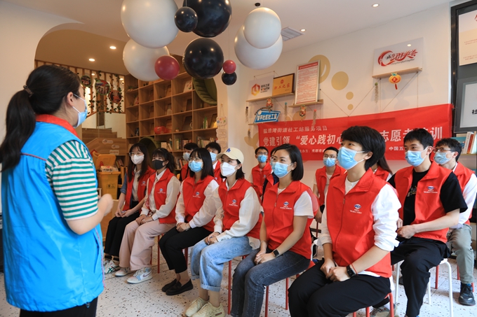 活動過程中,五冶團員、青年志愿者在愛有戲?qū)I(yè)社工的帶領下深度了解了義倉物資入庫到發(fā)放的流程,進行了現(xiàn)場觀摩。同時,愛有戲還對參與活動的五冶團員、青年志愿者進行了志愿服務專題培訓,介紹了當前部分困境兒童現(xiàn)狀和服務情況,講授了對困境兒童開展針對性服務和陪伴的技巧,進一步提升了大家開展志愿服務專業(yè)能力。